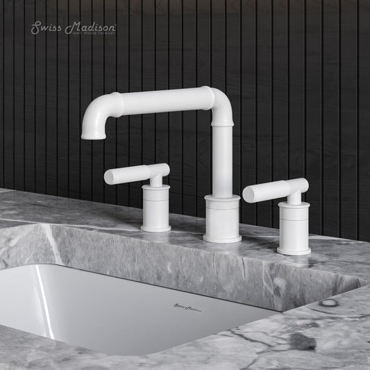 Swiss Madison Avallon 8 in. Widespread, Sleek Handle, Bathroom Faucet in Matte White