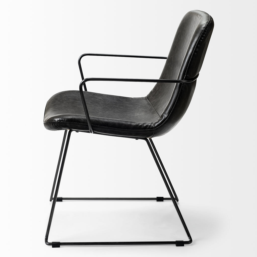Black Faux Leather Seat, Black Iron Frame Dining Chair