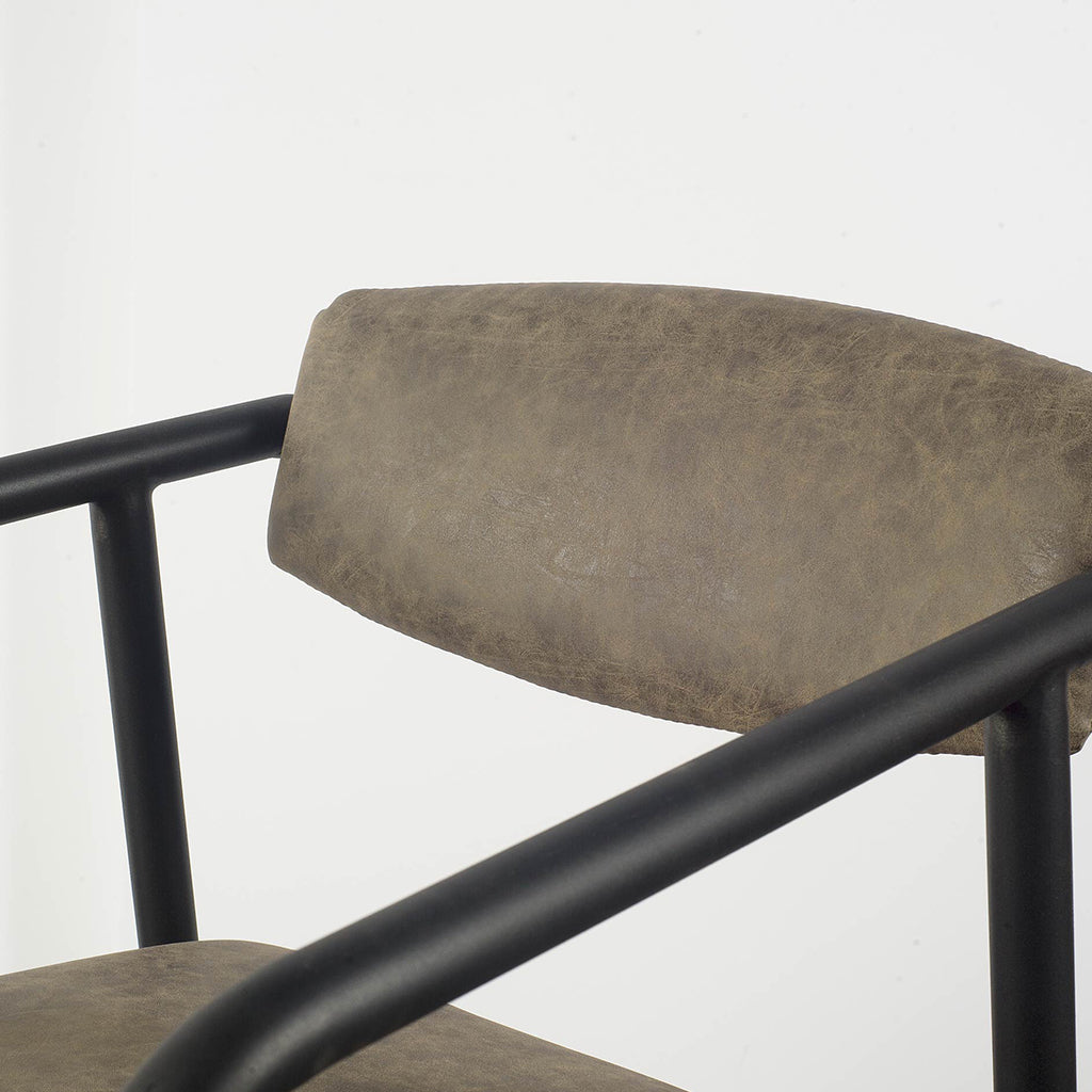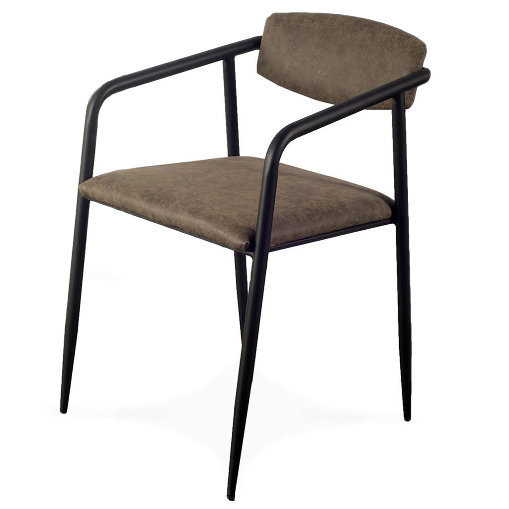 Brown Faux Leather Seat With Black Iron Frame Dining Chair