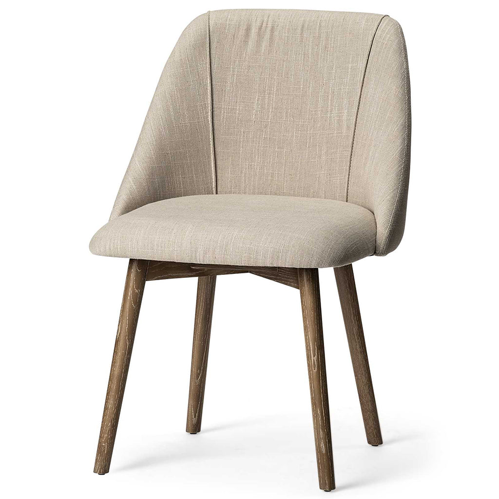 Cream Fabric Wrap With Brown Wooden Base Dining Chair