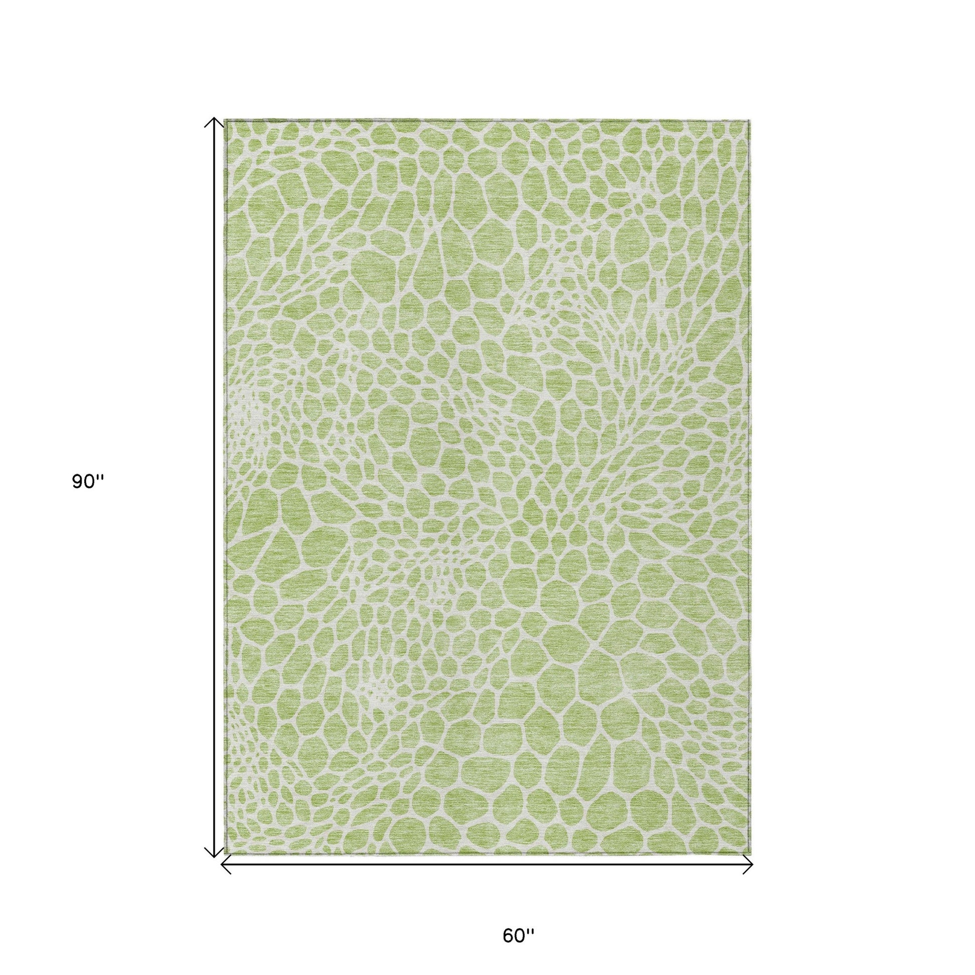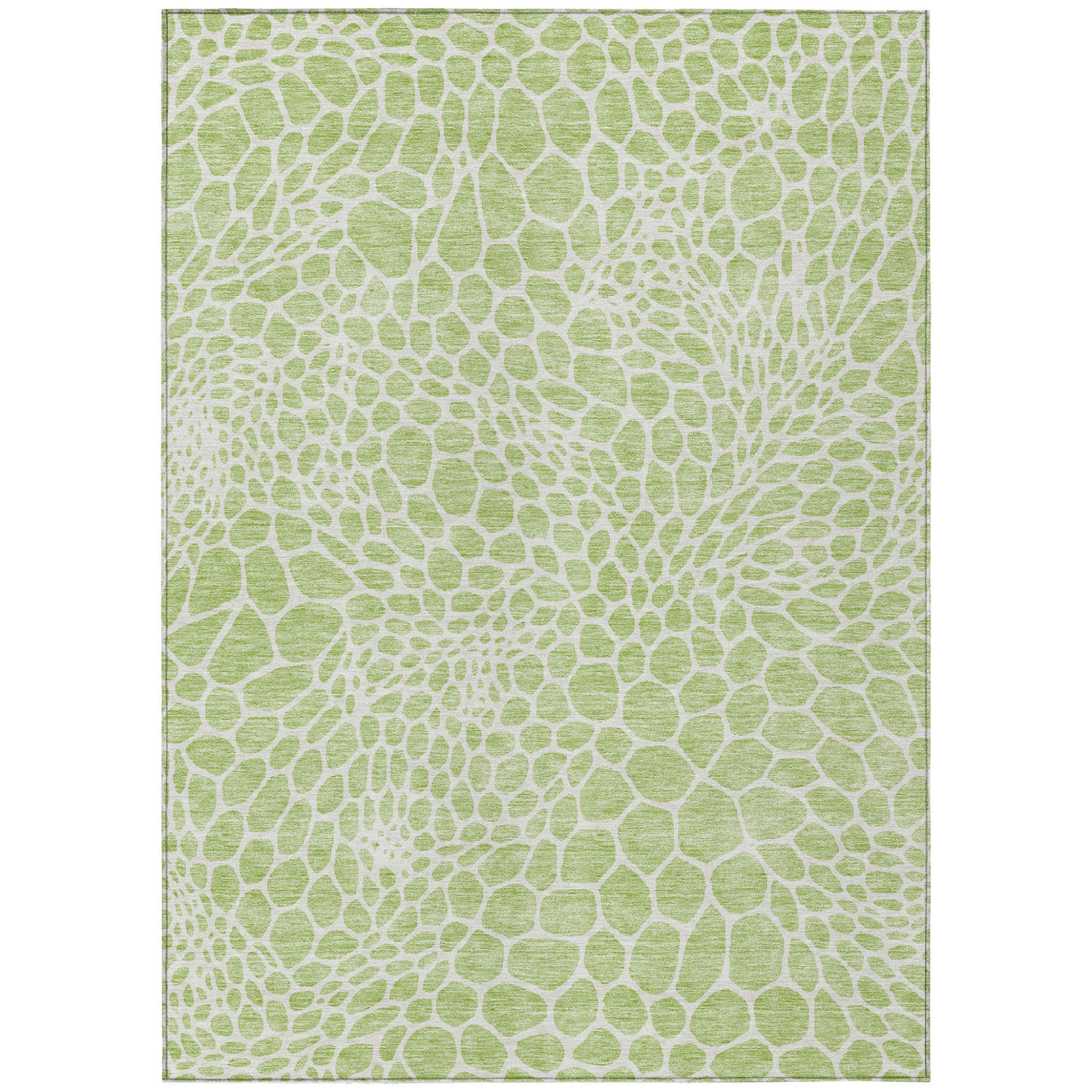 Tabselect Home Line 5' X 8' Artichoke Green And Ivory Geometric Washable Indoor Outdoor Area Rug