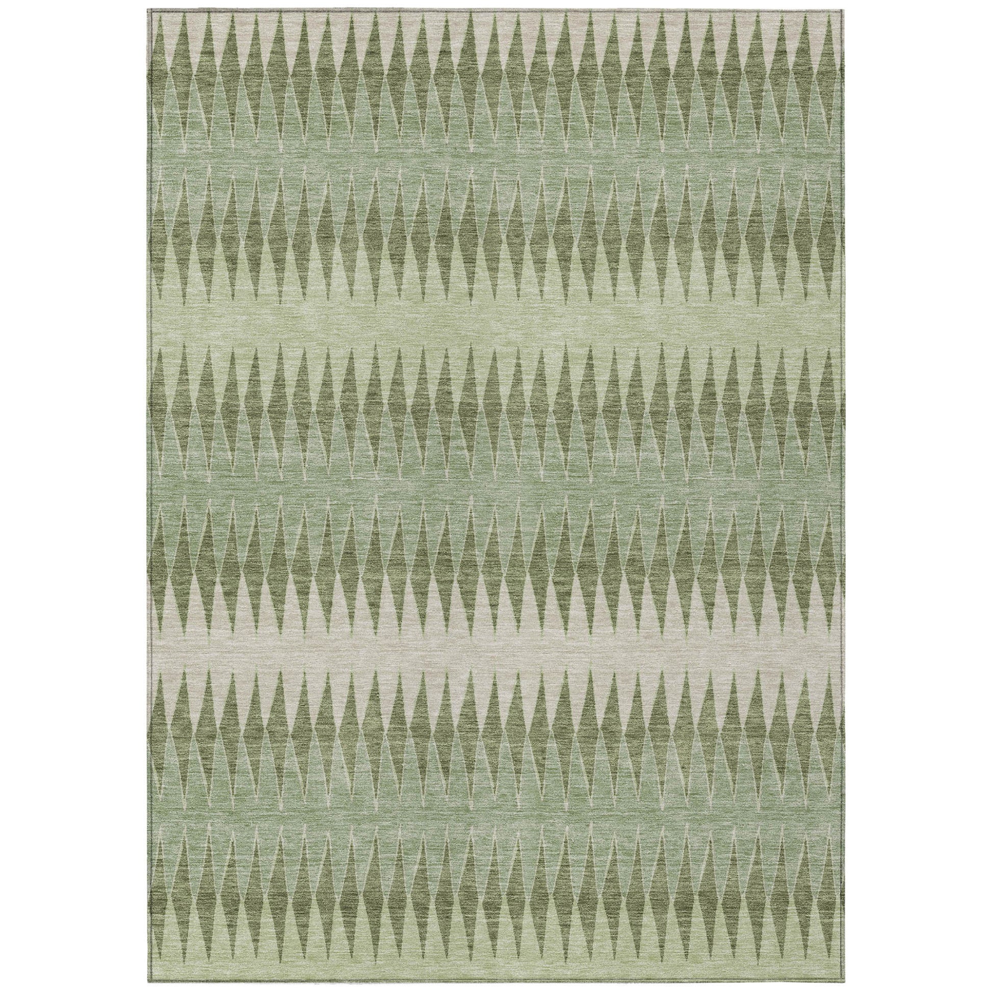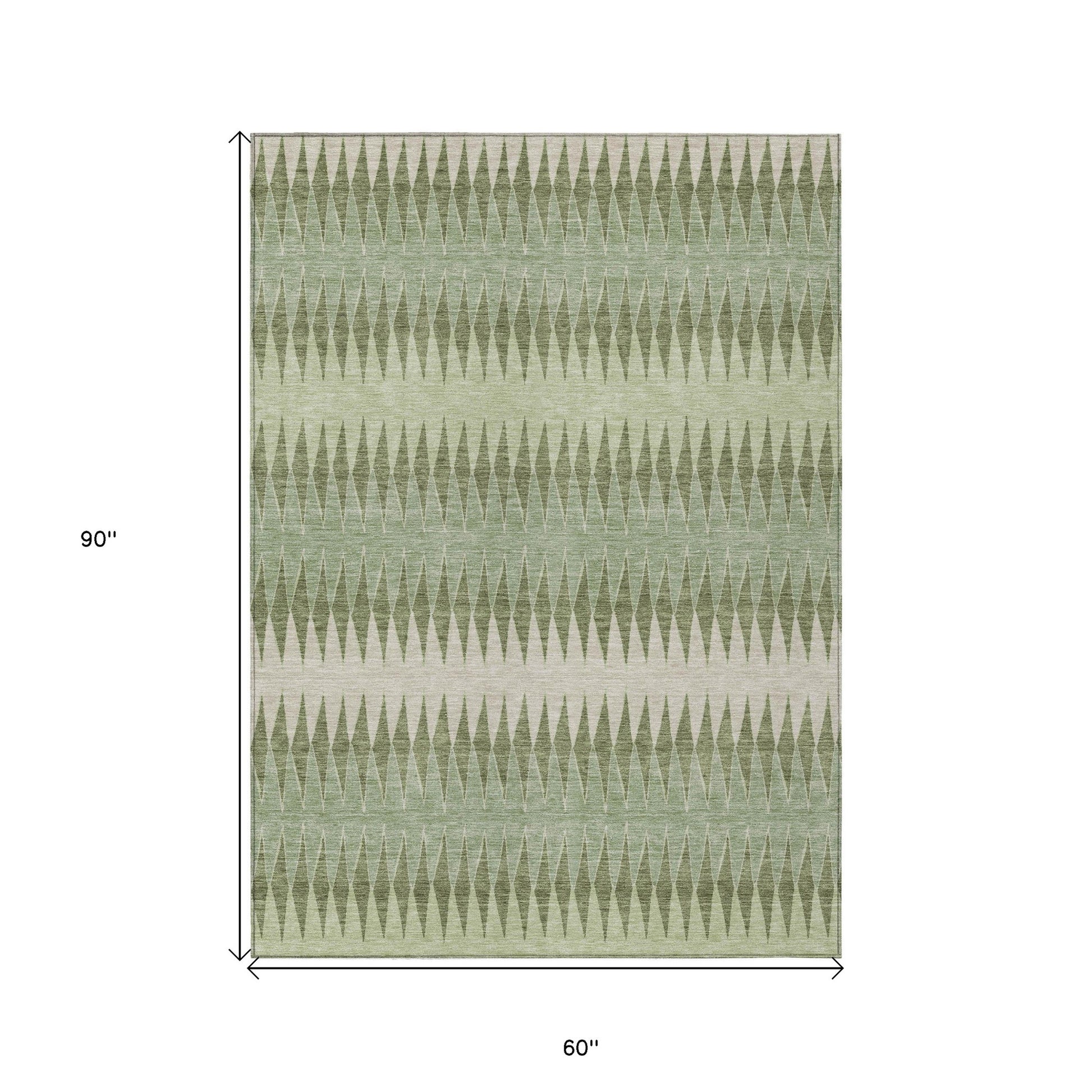 Tabselect Home Line 5' X 8' Artichoke Green And Light Green Striped Washable Indoor Outdoor Area Rug