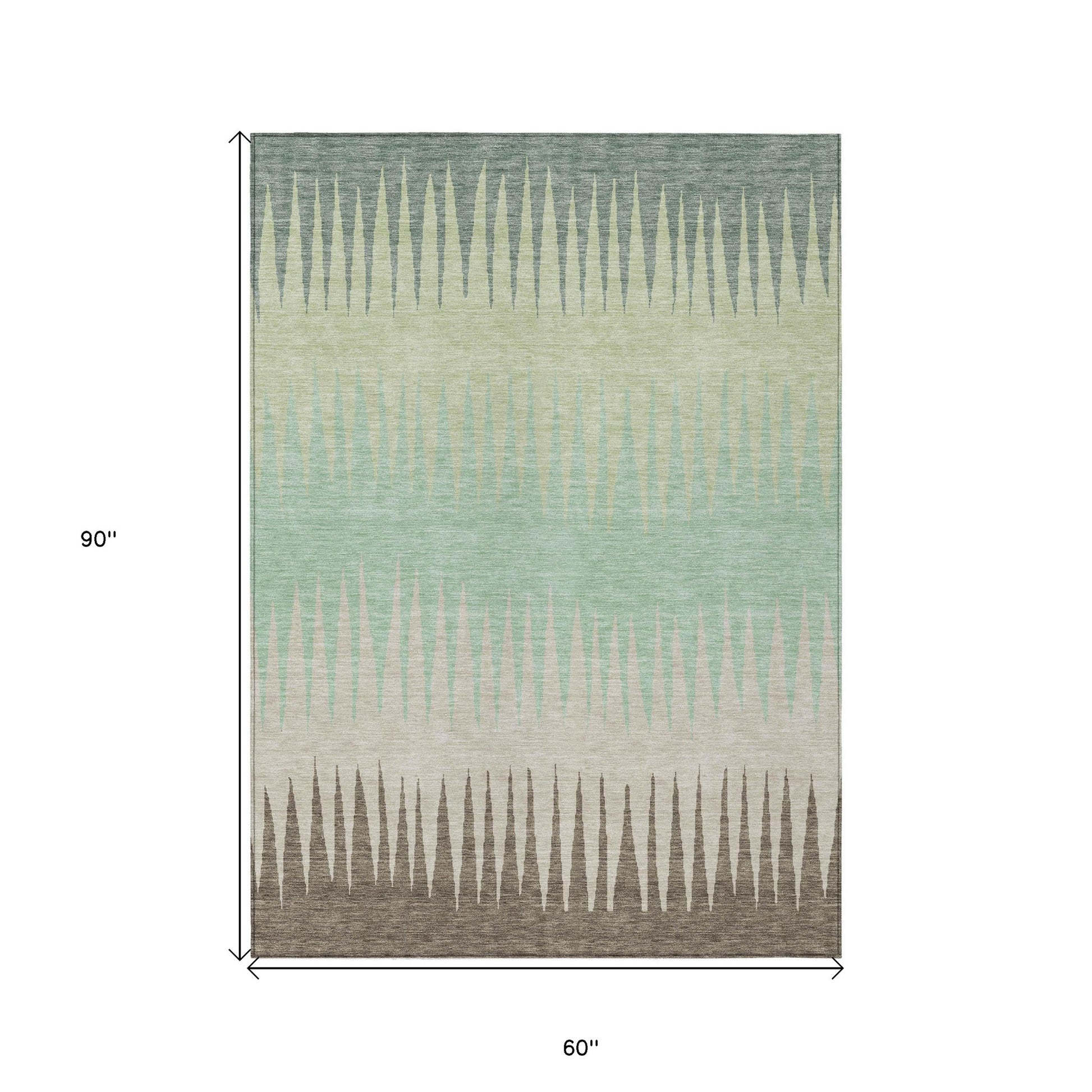 This 5-foot x 8-foot artichoke green beige and brown striped washable indoor outdoor area rug, is a great way to add warmth to a room. This rectangle shaped rug features a striped design that will work well both indoors or out. A classic shape marries with good looking design for your living room, hall, bedroom, porch, patio, or poolside. Ideal for outdoor spaces or high traffic areas with kids and pets, this rug is made from heavy duty polyester that is stain resistant to help repel water, dirt, and stains. Versatile in use, durable, and easy to maintain, this rug is an ideal solution to add a decorative and inviting touch to your indoor or outdoor space. 60-inch h x 90-inch w x 0.19-inch d.