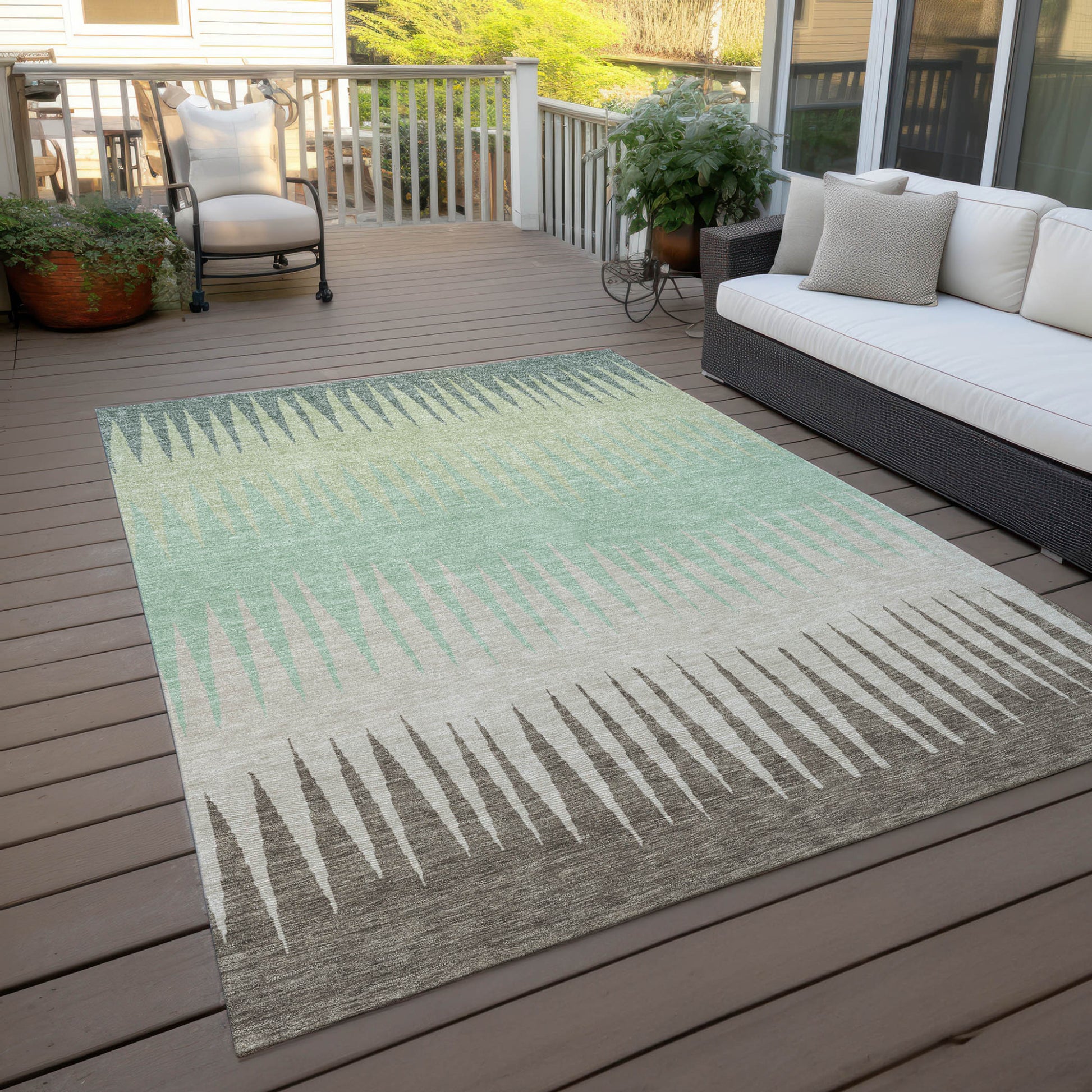 Tabselect Home Line 5' X 8' Artichoke Green Beige And Brown Striped Washable Indoor Outdoor Area Rug