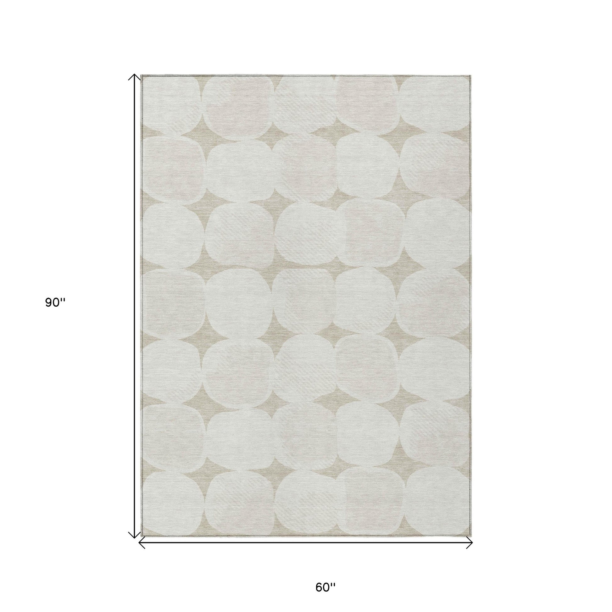 Tabselect Home Line 5' X 8' Beige And Brown Abstract Washable Indoor Outdoor Area Rug