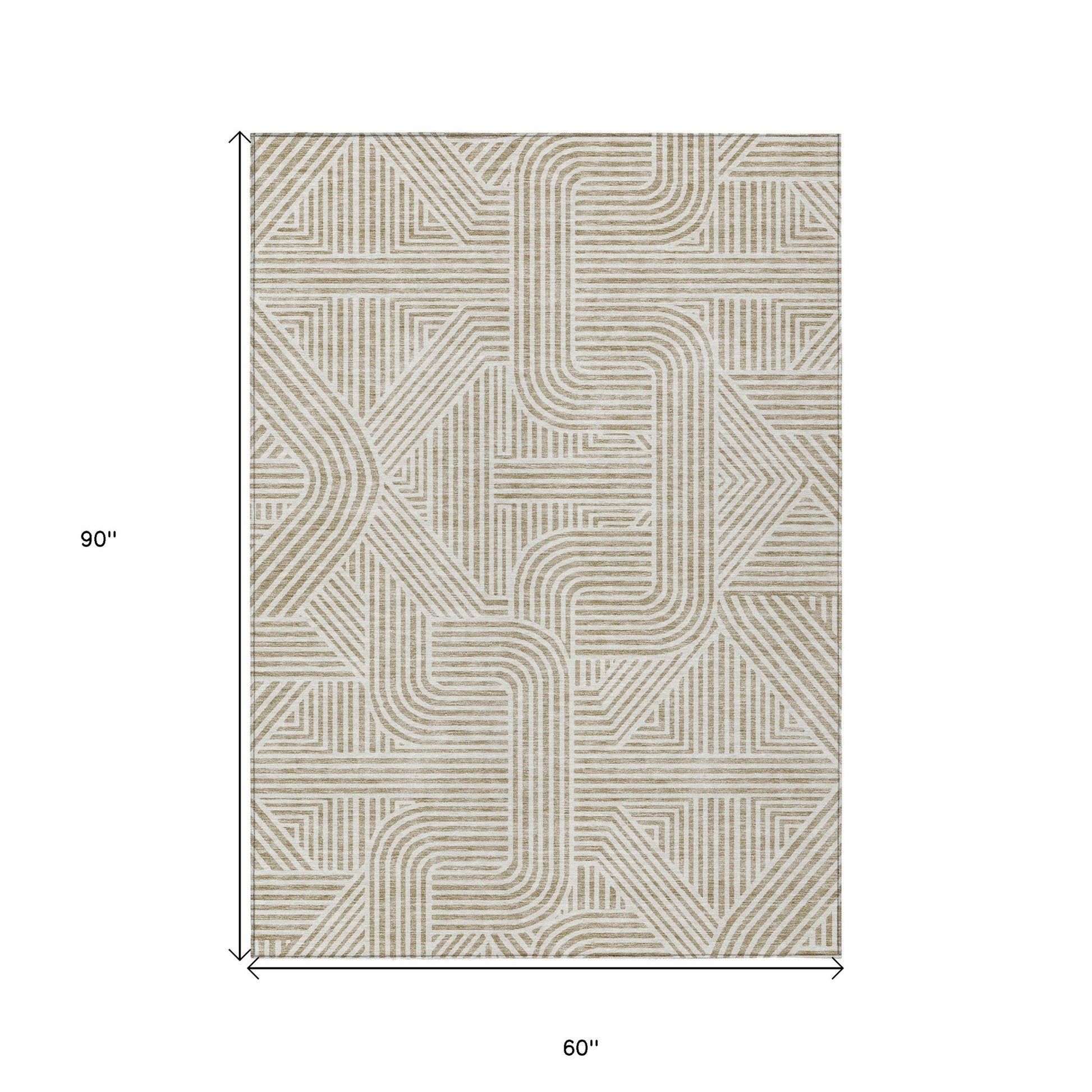 Tabselect Home Line 5' X 8' Beige And Brown Abstract Washable Indoor Outdoor Area Rug