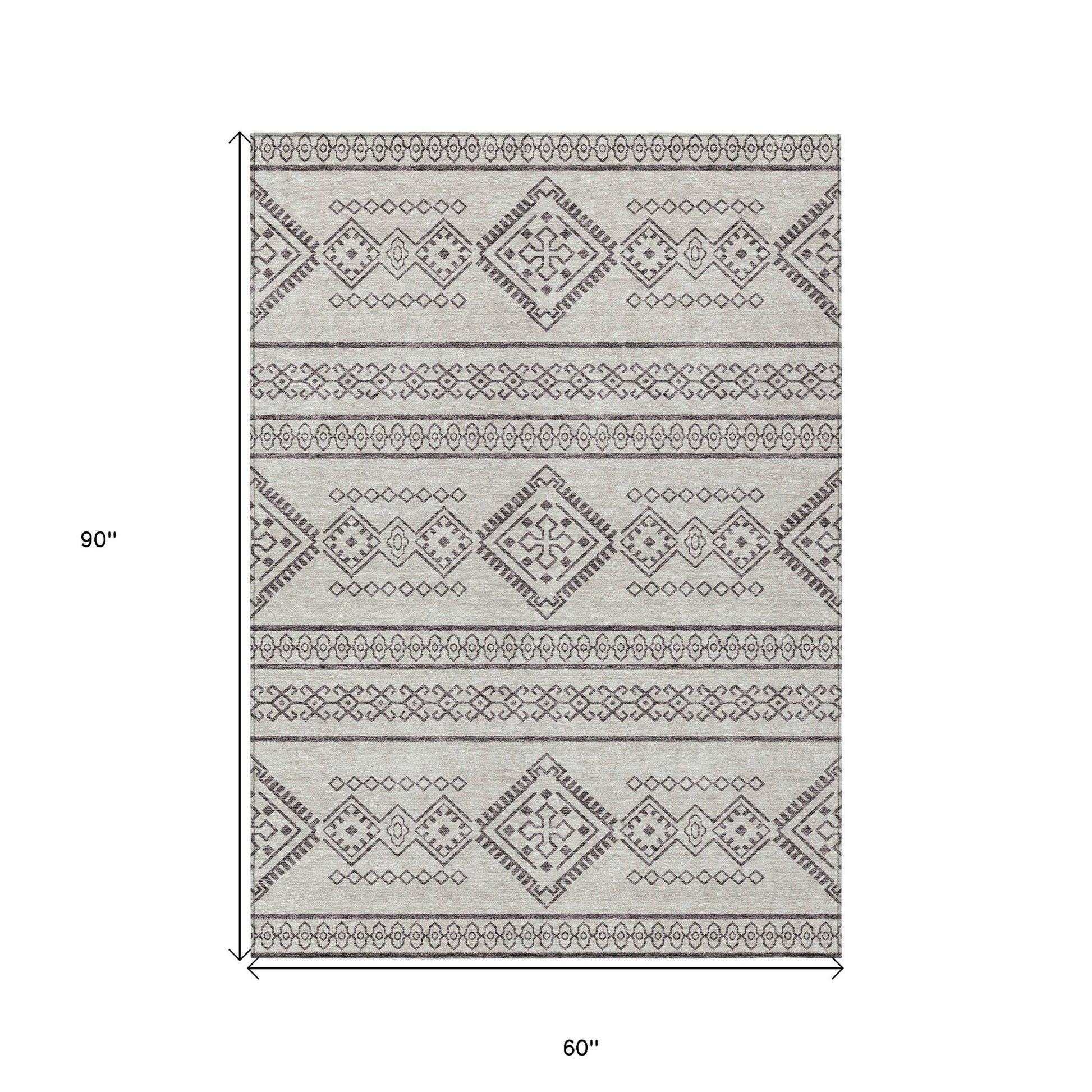 Tabselect Home Line 5' X 8' Beige And Brown Southwestern Washable Indoor Outdoor Area Rug