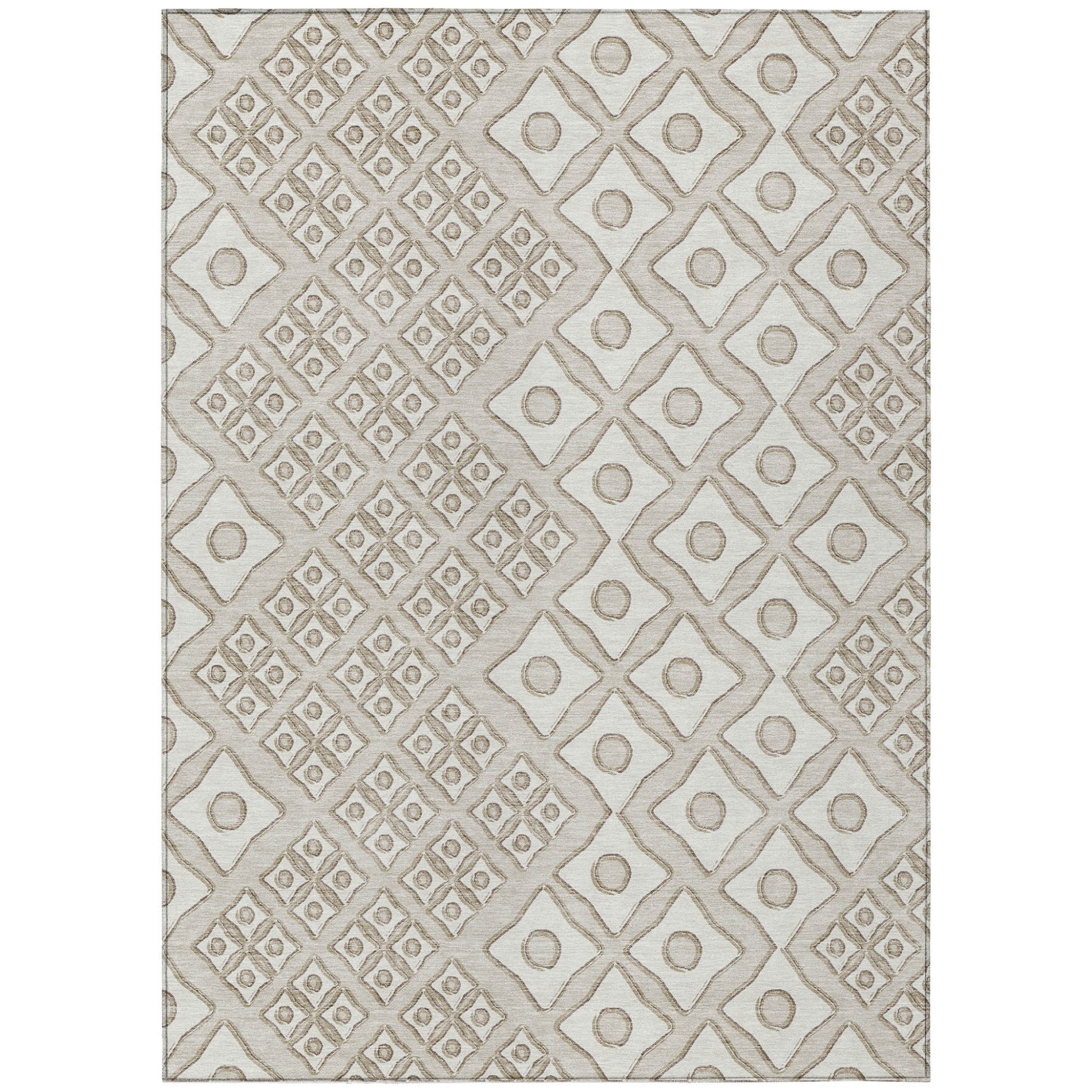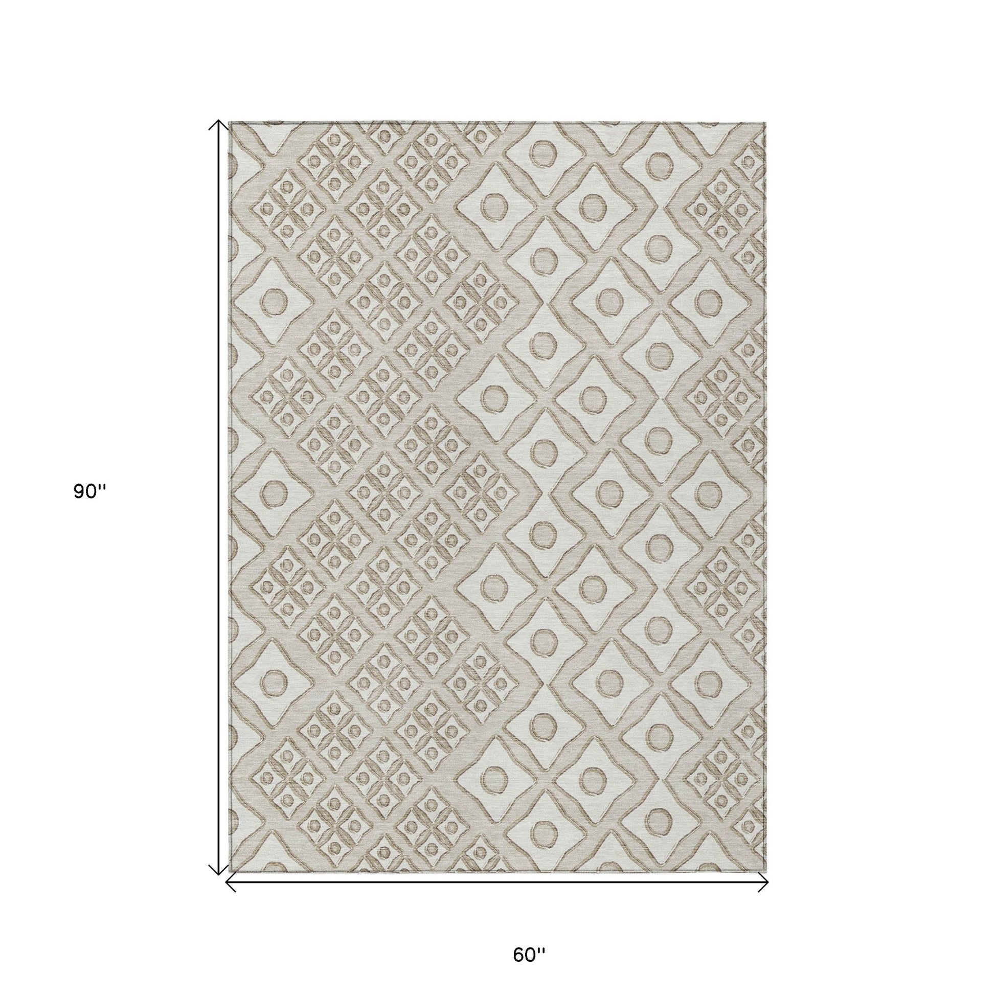Tabselect Home Line 5' X 8' Beige And Ivory Geometric Washable Indoor Outdoor Area Rug