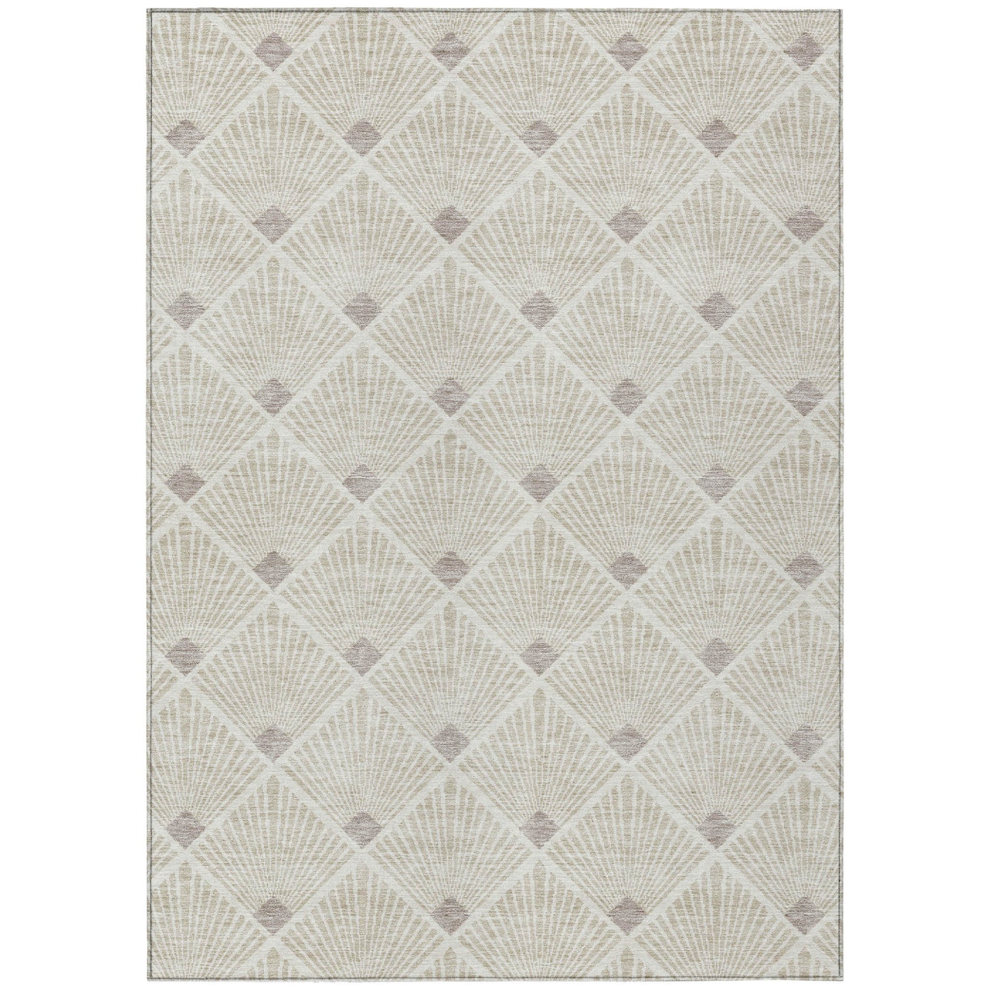 Tabselect Home Line 5' X 8' Beige And Ivory Geometric Washable Indoor Outdoor Area Rug