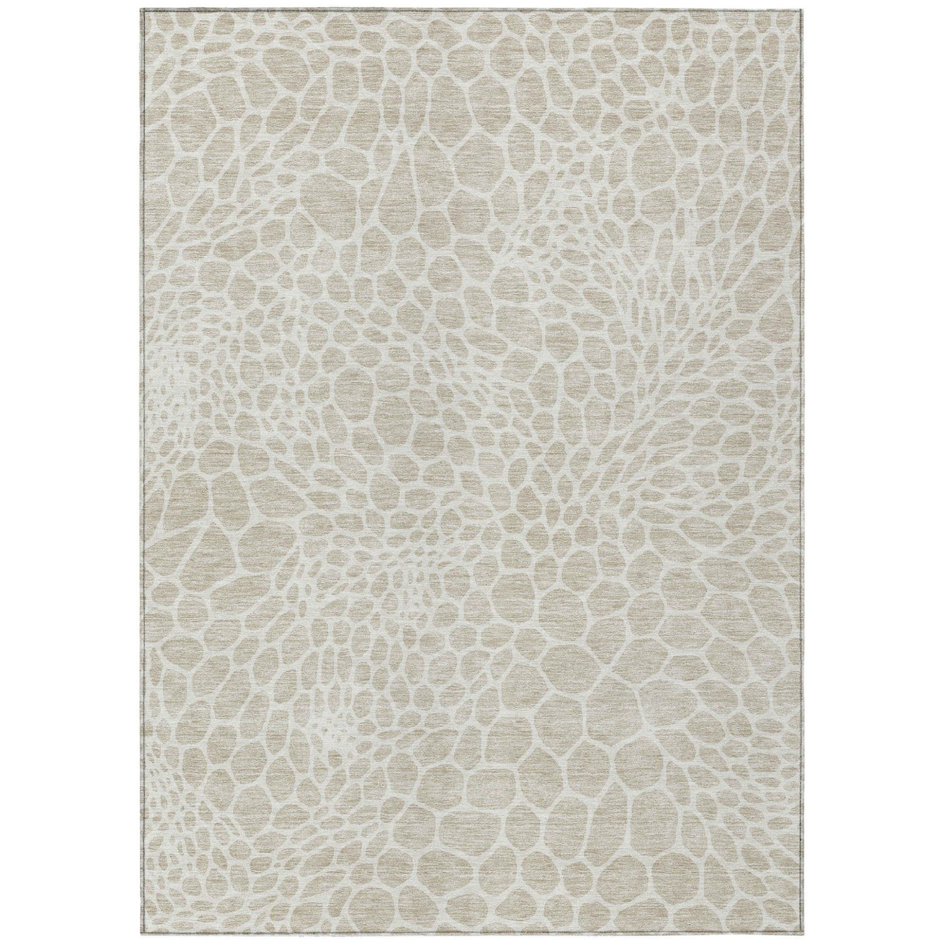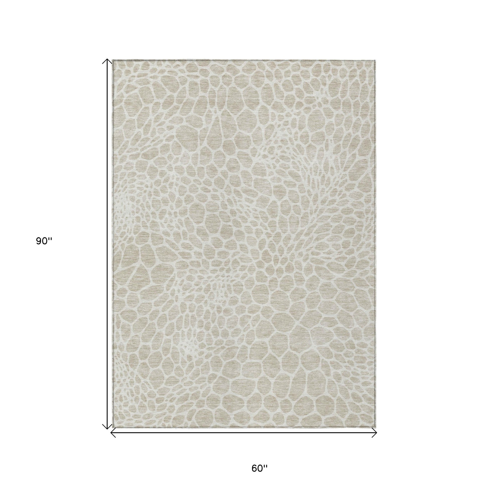 Tabselect Home Line 5' X 8' Beige And Ivory Geometric Washable Indoor Outdoor Area Rug