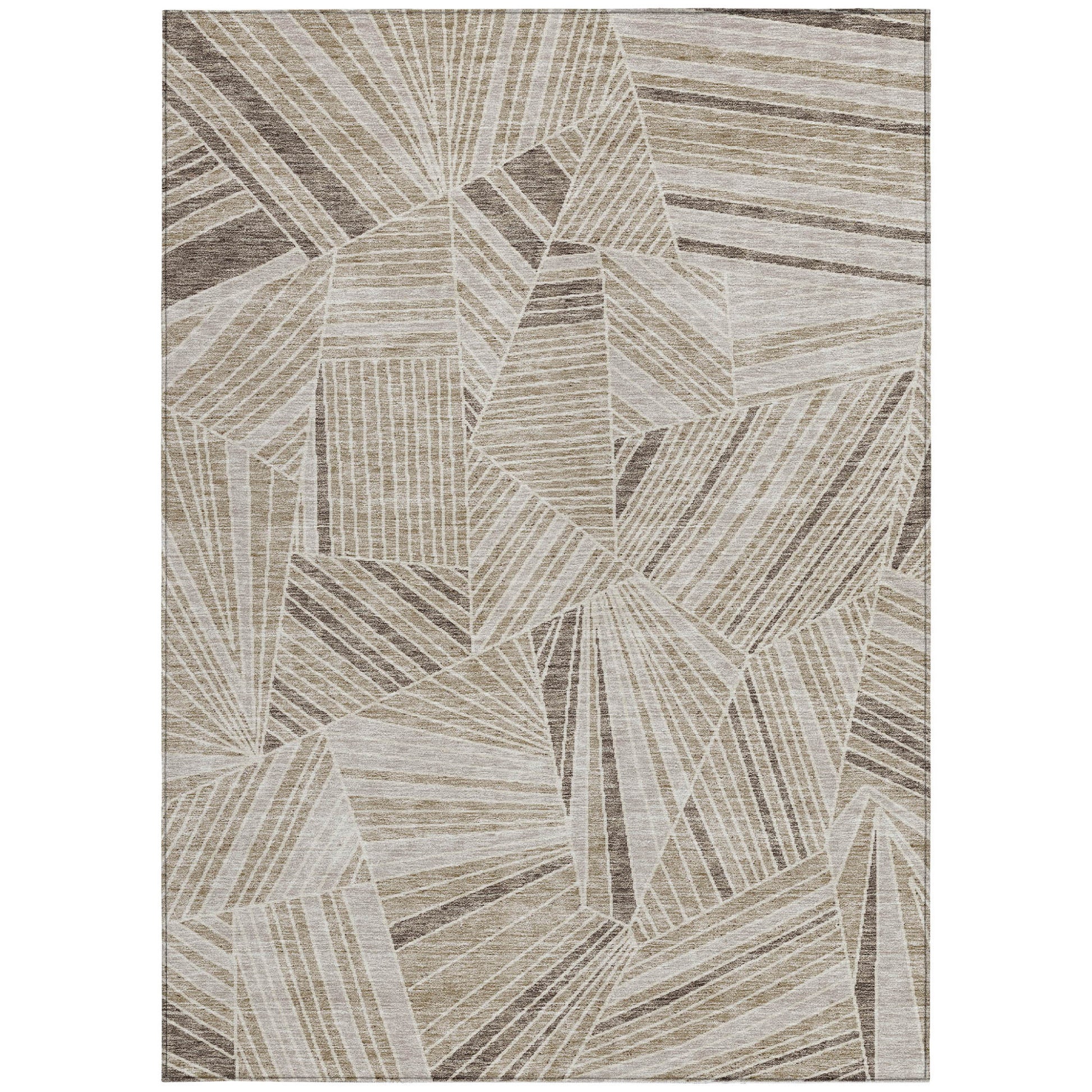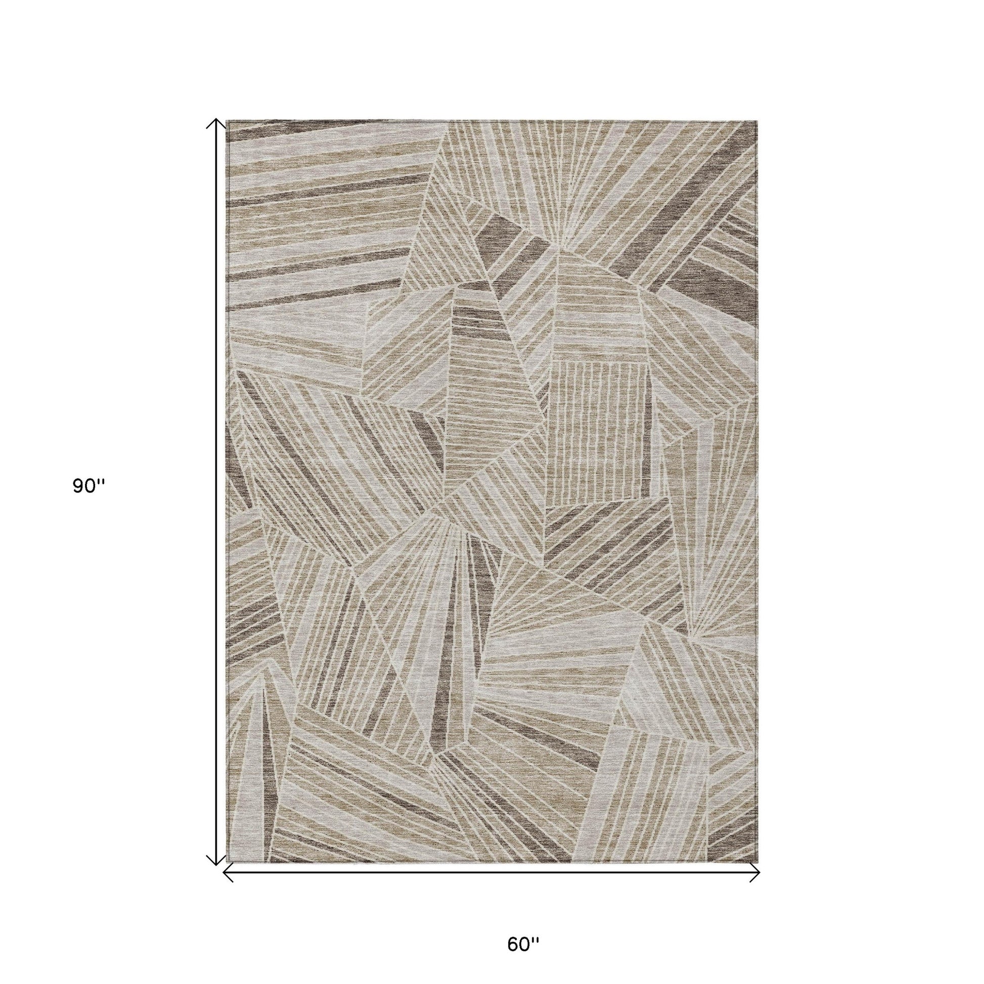 Tabselect Home Line 5' X 8' Beige Brown And Ivory Geometric Washable Indoor Outdoor Area Rug