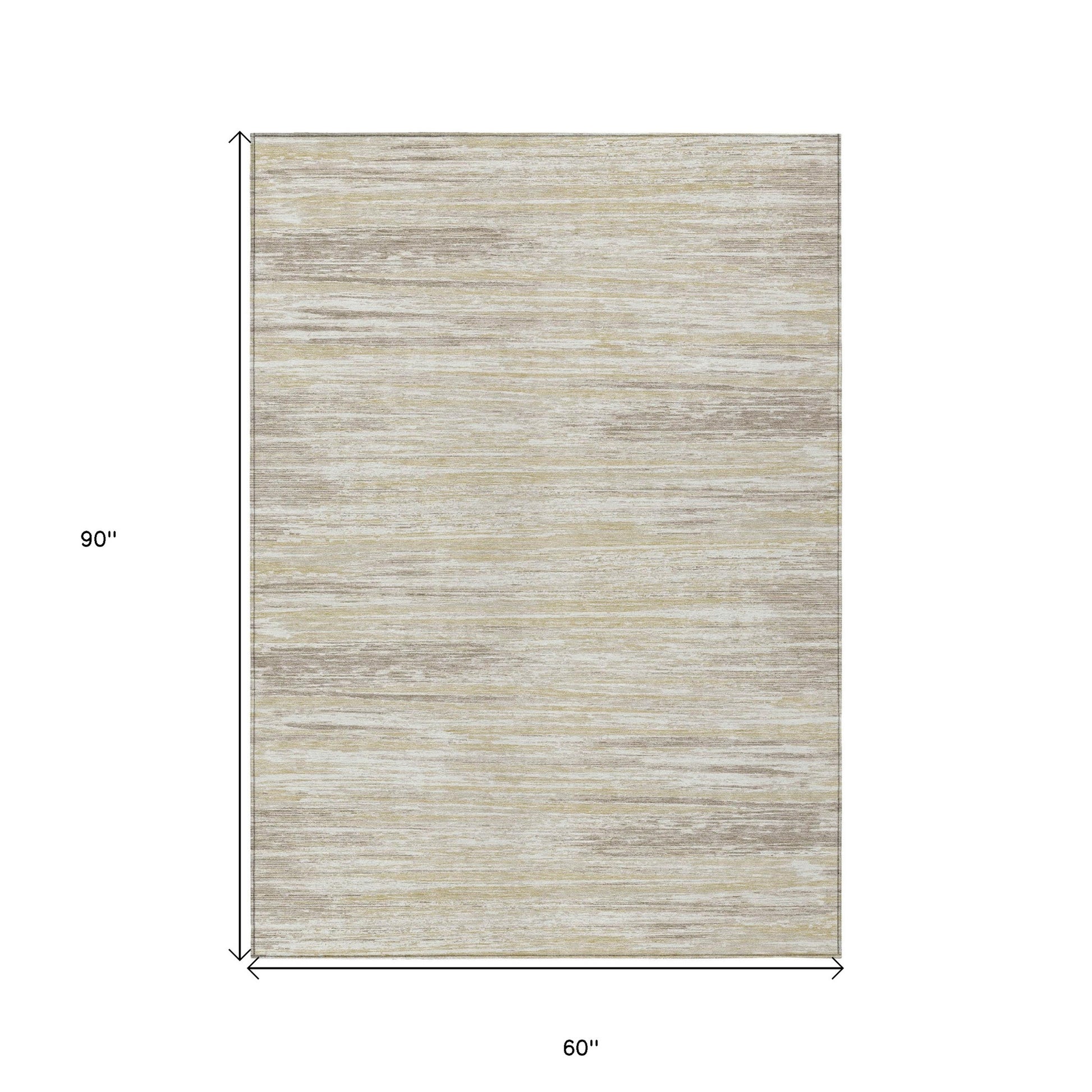 Tabselect Home Line 5' X 8' Beige Brown And Ivory Striped Washable Indoor Outdoor Area Rug