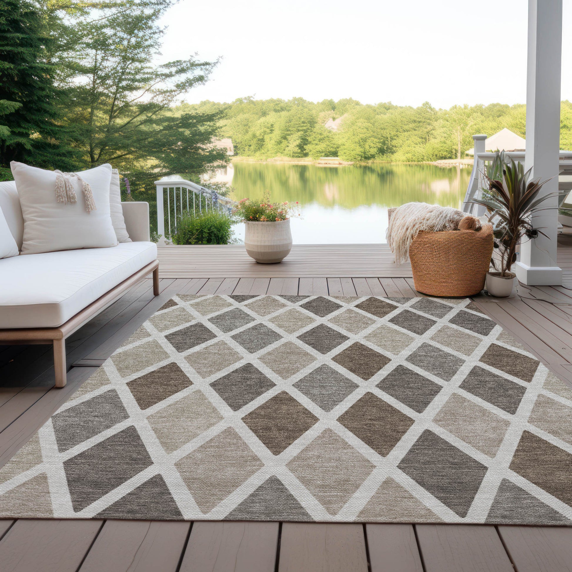 Add some artistry to your room with this 5-foot x 8-foot beige gray and brown geometric washable indoor outdoor area rug. This rectangle shaped rug features a geometric design that will work well both indoors or out. A classic shape marries with good looking design for your living room, hall, bedroom, porch, patio, or poolside. Ideal for outdoor spaces or high traffic areas with kids and pets, this rug is made from heavy duty polyester that is stain resistant to help repel water, dirt, and stains. Versatile in use, durable, and easy to maintain, this rug is an ideal solution to add a decorative and inviting touch to your indoor or outdoor space. 60-inch h x 90-inch w x 0.19-inch d.