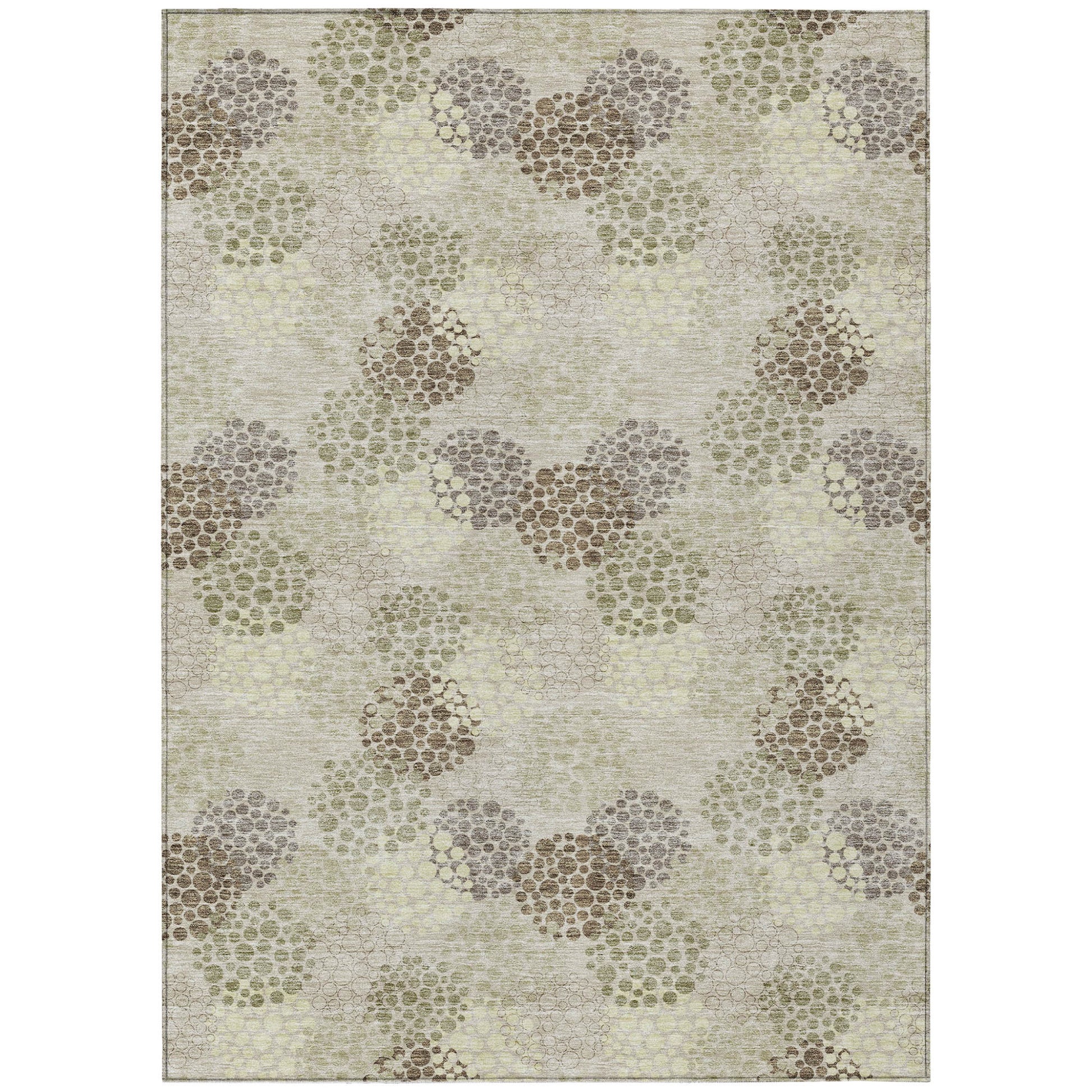 Tabselect Home Line 5' X 8' Beige Green And Ivory Polka Dot Washable Indoor Outdoor Area Rug