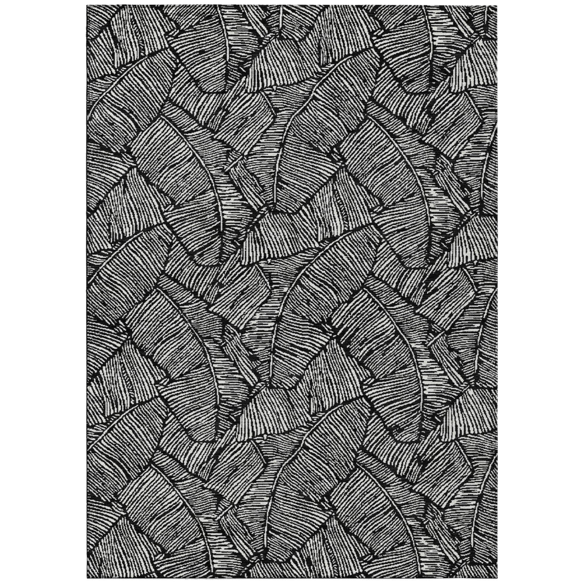 Tabselect Home Line 5' X 8' Black And Ivory Floral Washable Indoor Outdoor Area Rug