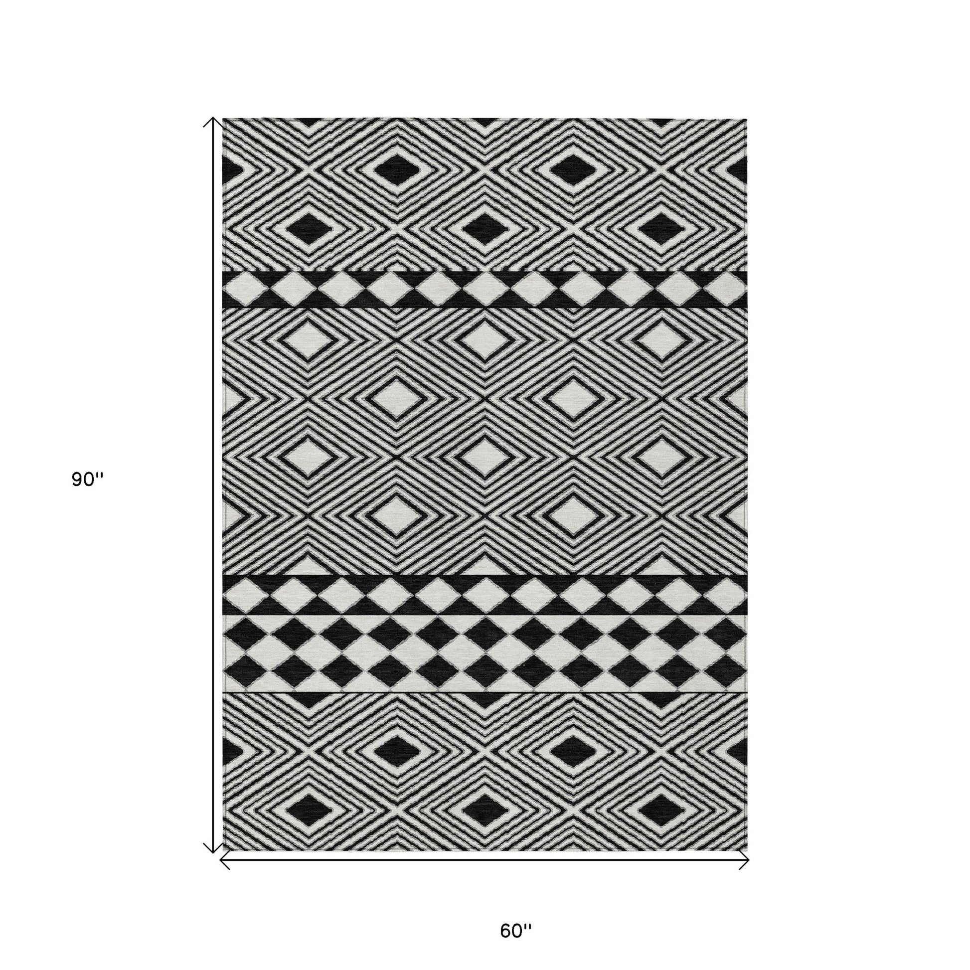 Tabselect Home Line 5' X 8' Black And Ivory Geometric Washable Indoor Outdoor Area Rug
