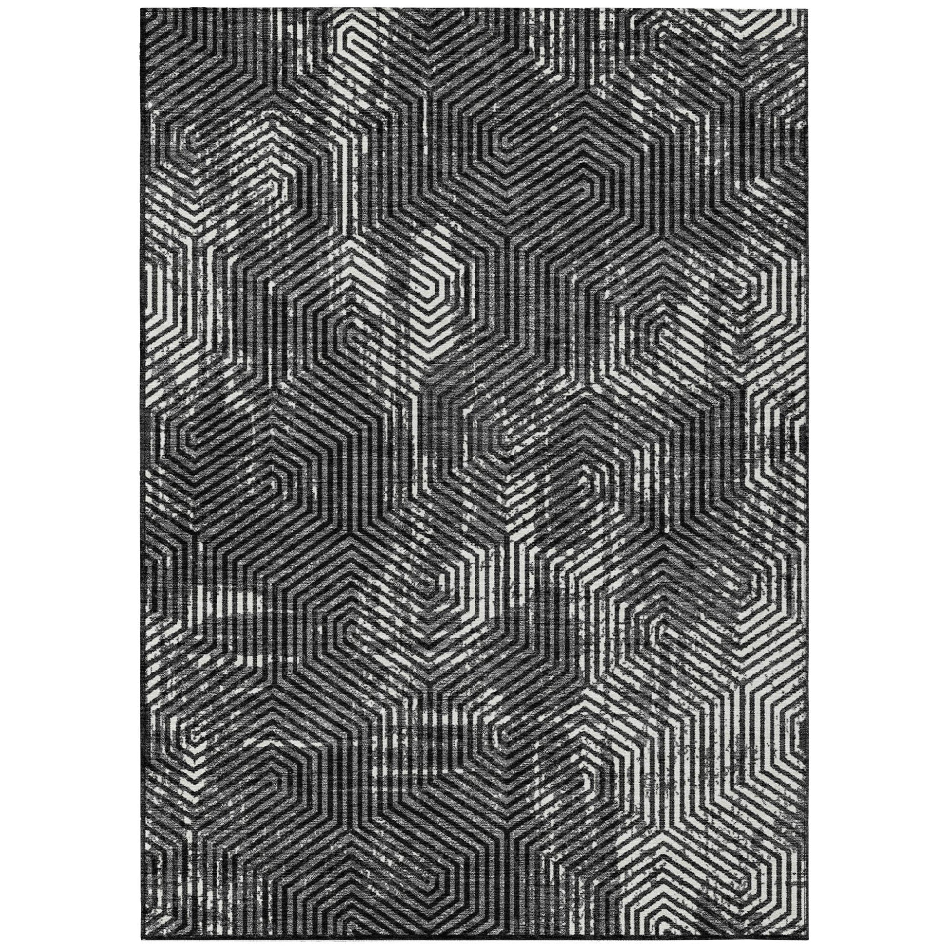 Tabselect Home Line 5' X 8' Black And Ivory Geometric Washable Indoor Outdoor Area Rug