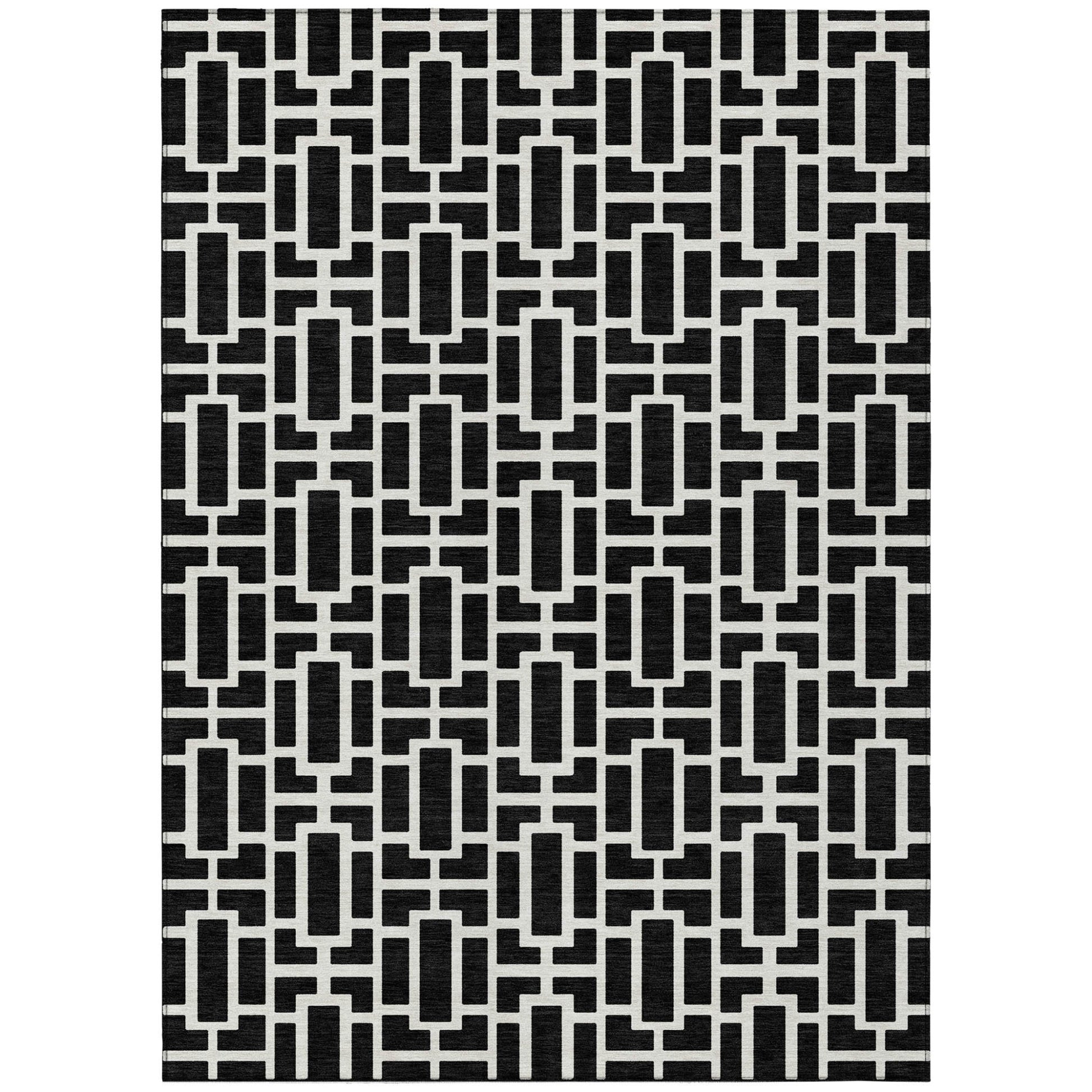 Tabselect Home Line 5' X 8' Black And Ivory Geometric Washable Indoor Outdoor Area Rug