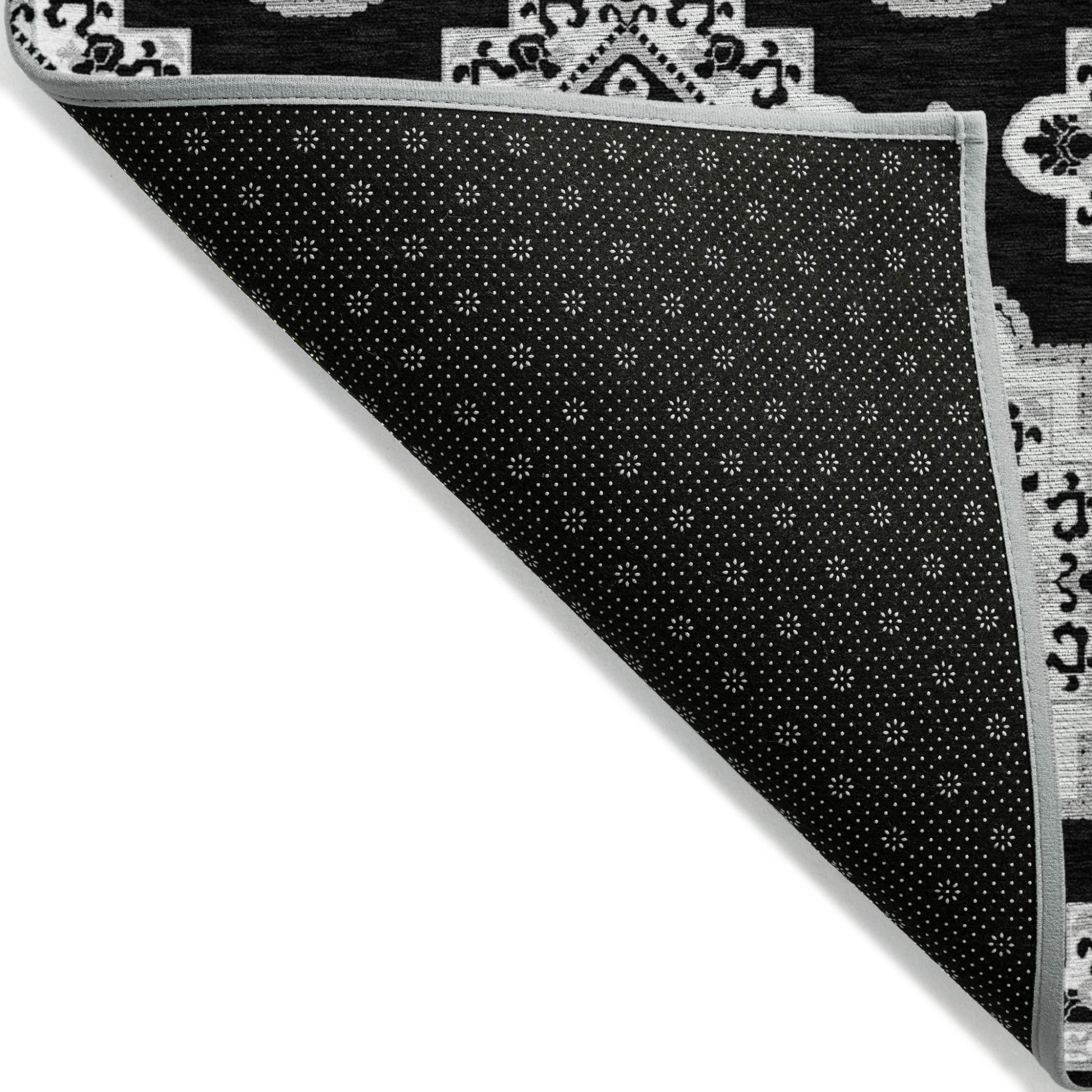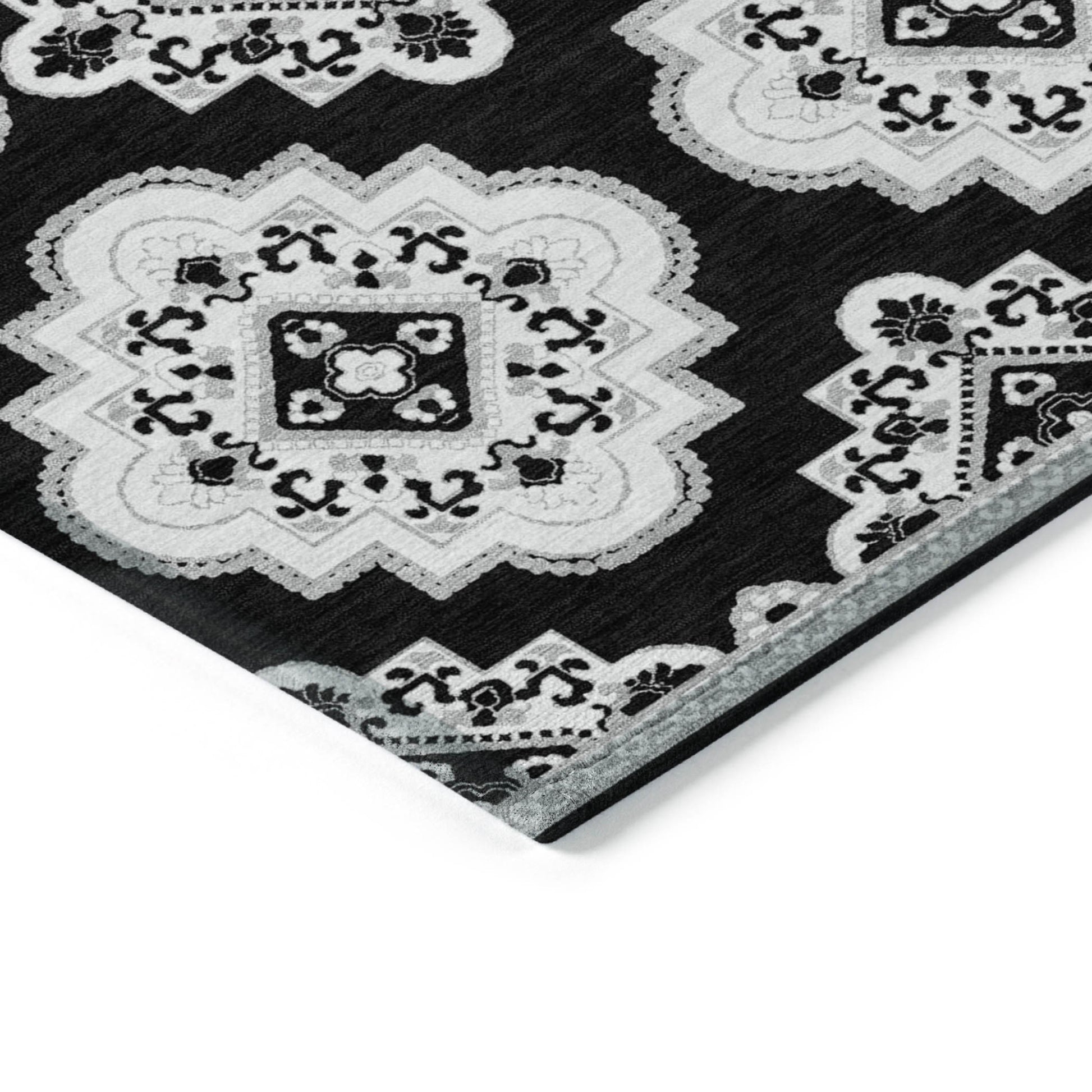 Tabselect Home Line 5' X 8' Black And Ivory Medallion Washable Indoor Outdoor Area Rug