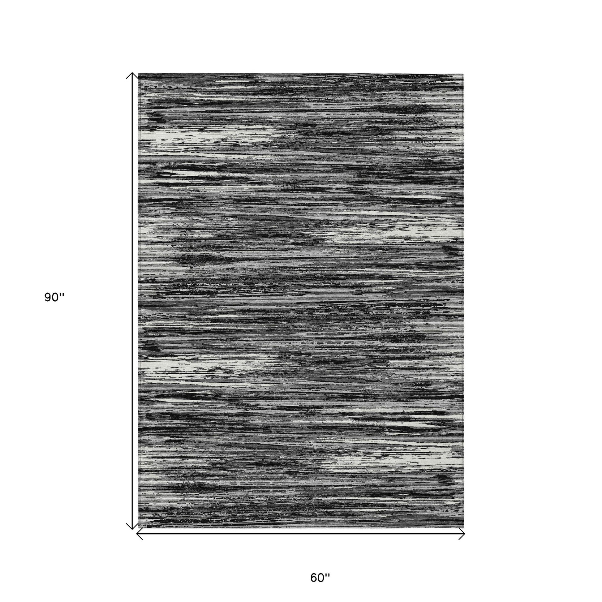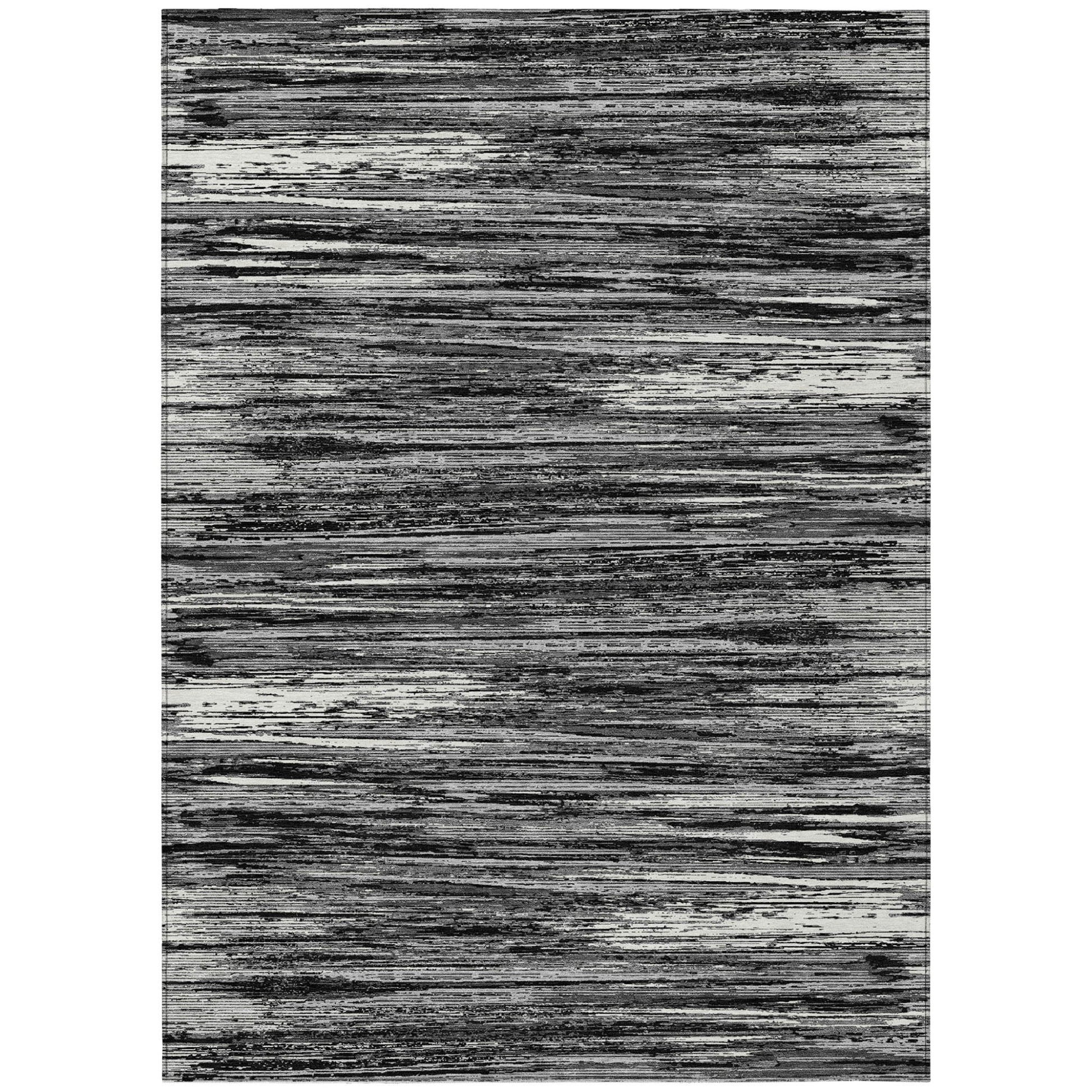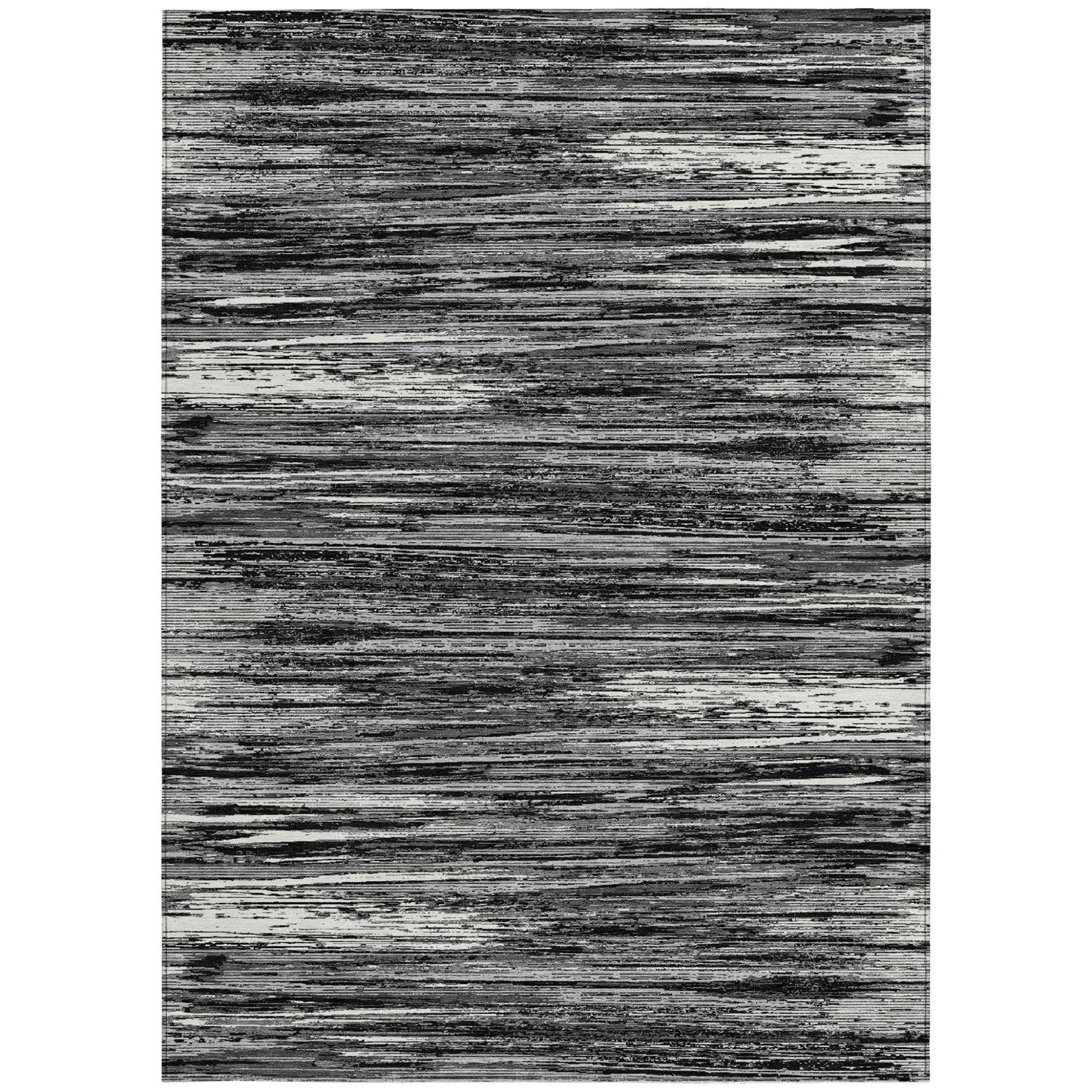 Tabselect Home Line 5' X 8' Black And Ivory Striped Washable Indoor Outdoor Area Rug