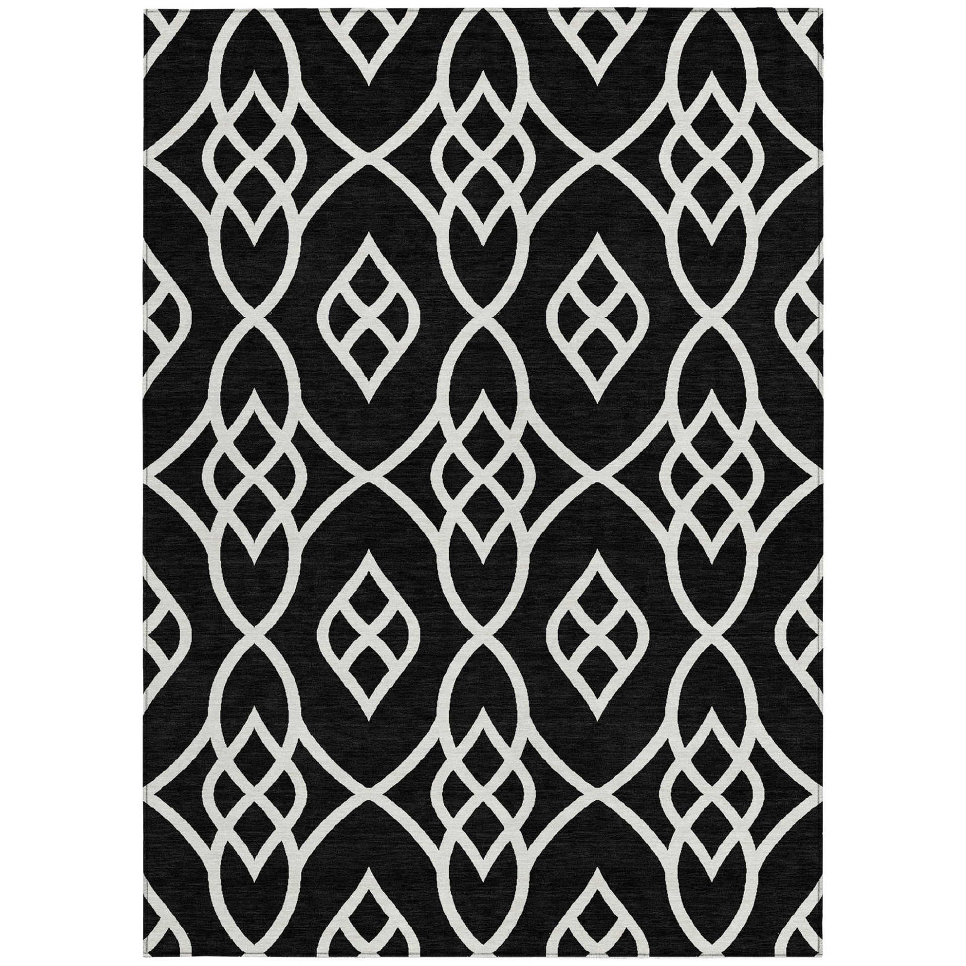 Tabselect Home Line 5' X 8' Black And Ivory Trellis Washable Indoor Outdoor Area Rug