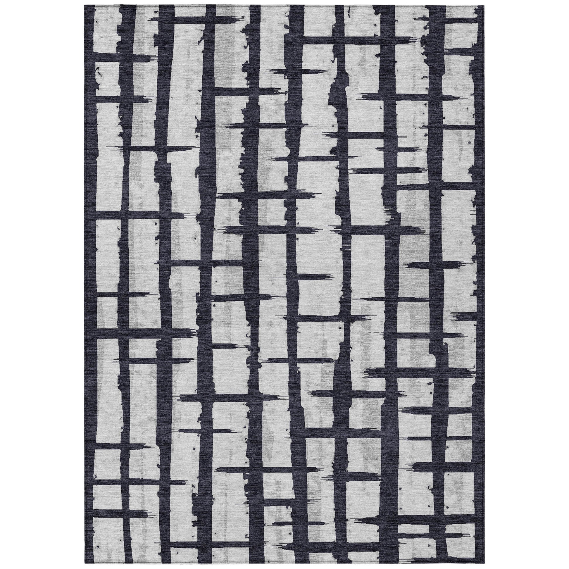 Tabselect Home Line 5' X 8' Black Beige And Gray Striped Washable Indoor Outdoor Area Rug
