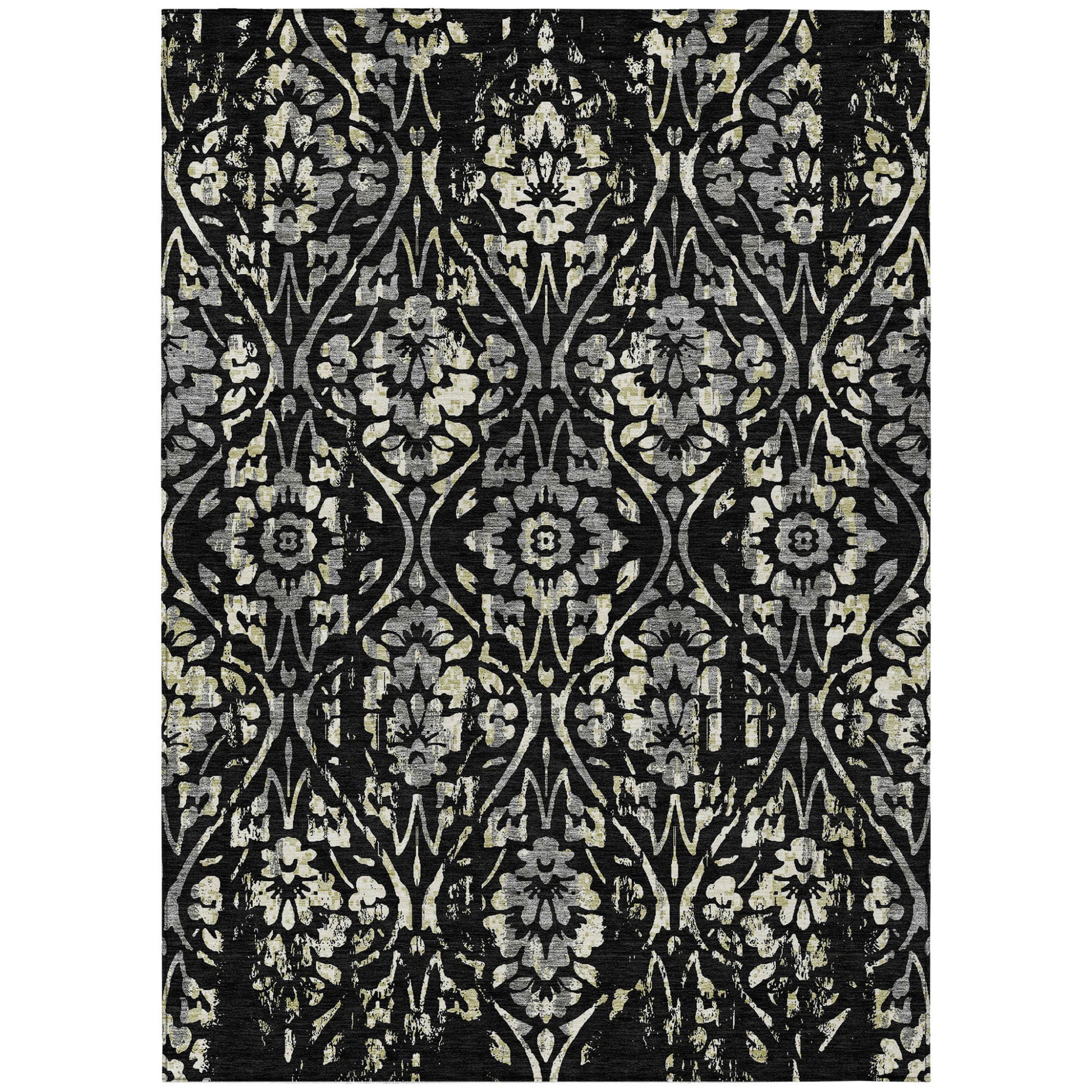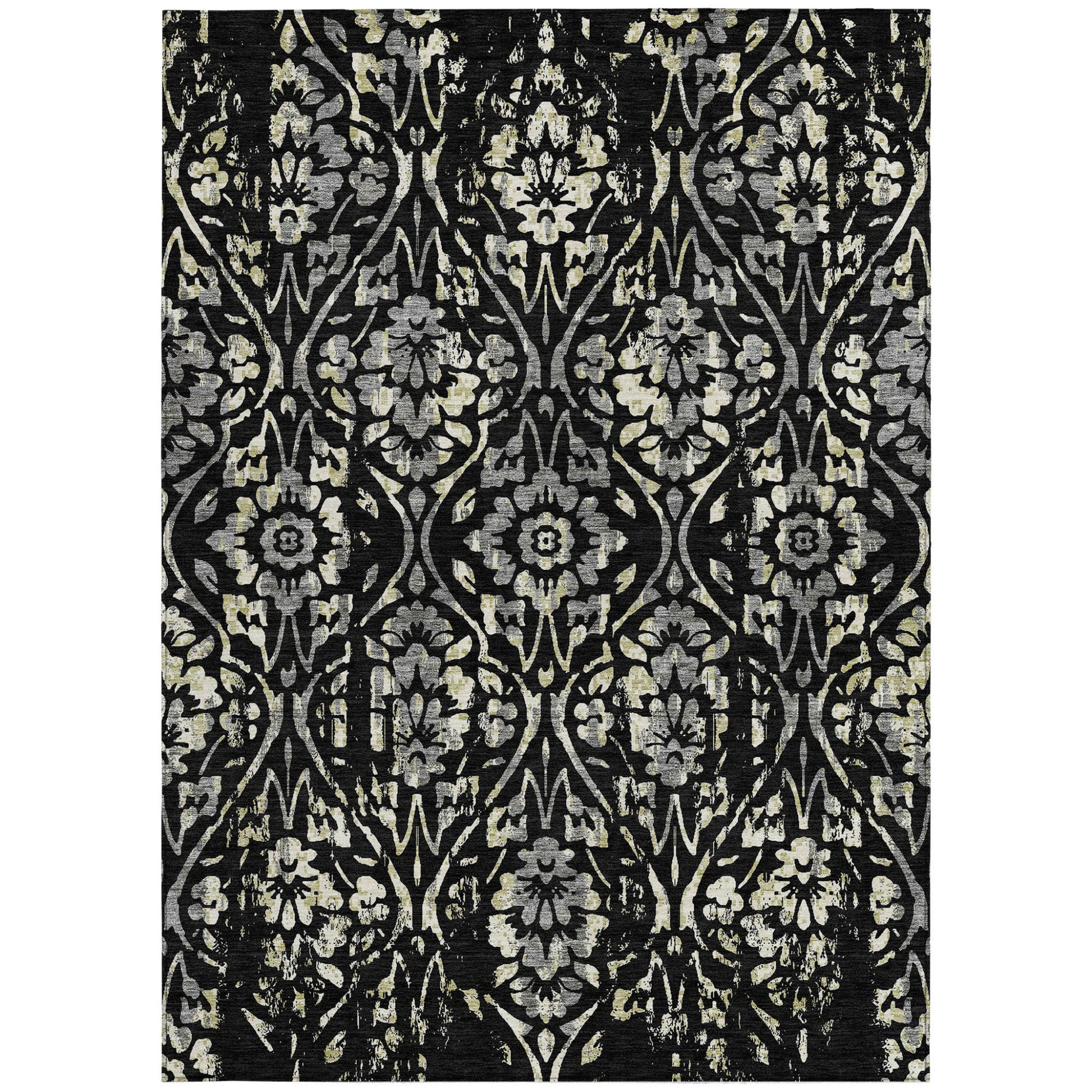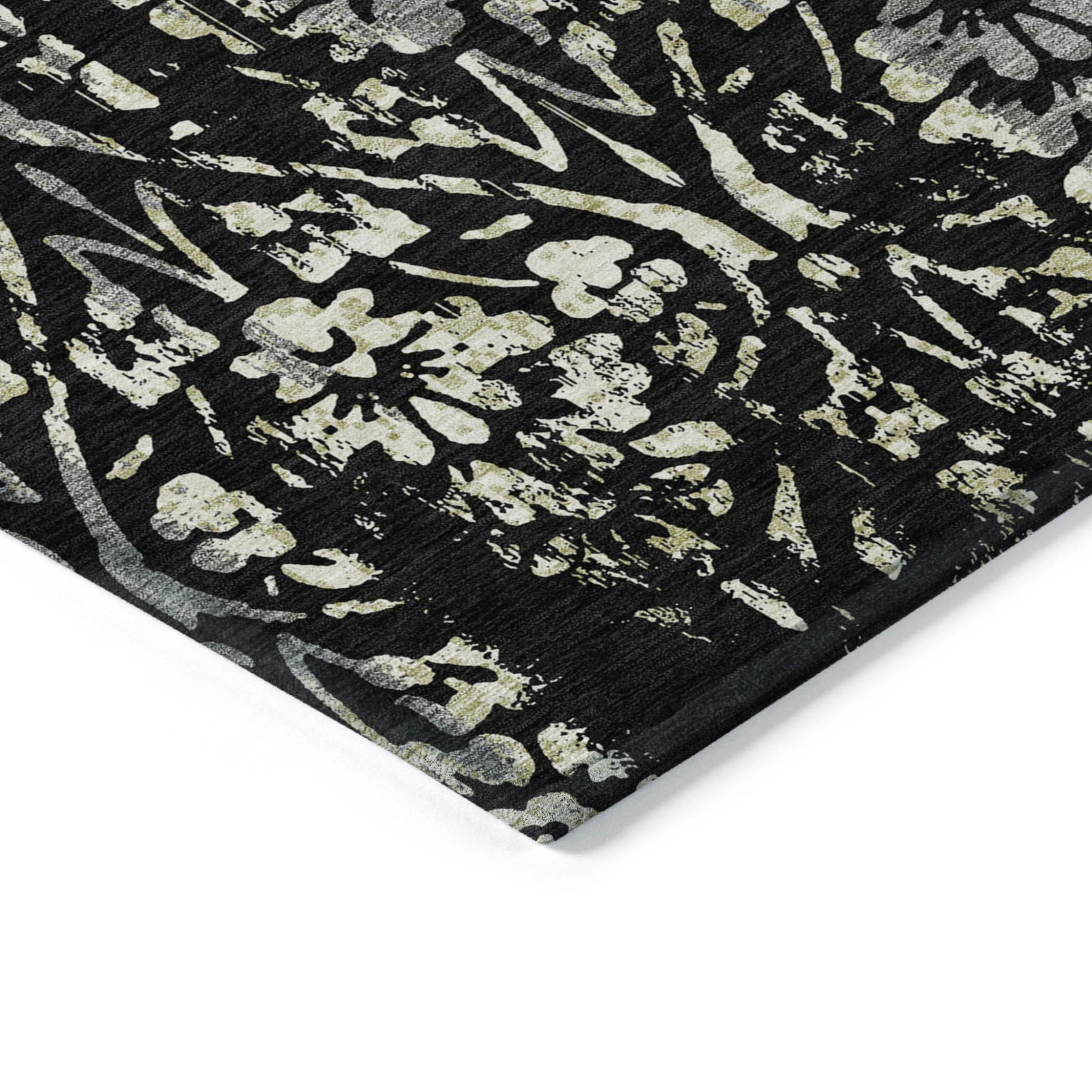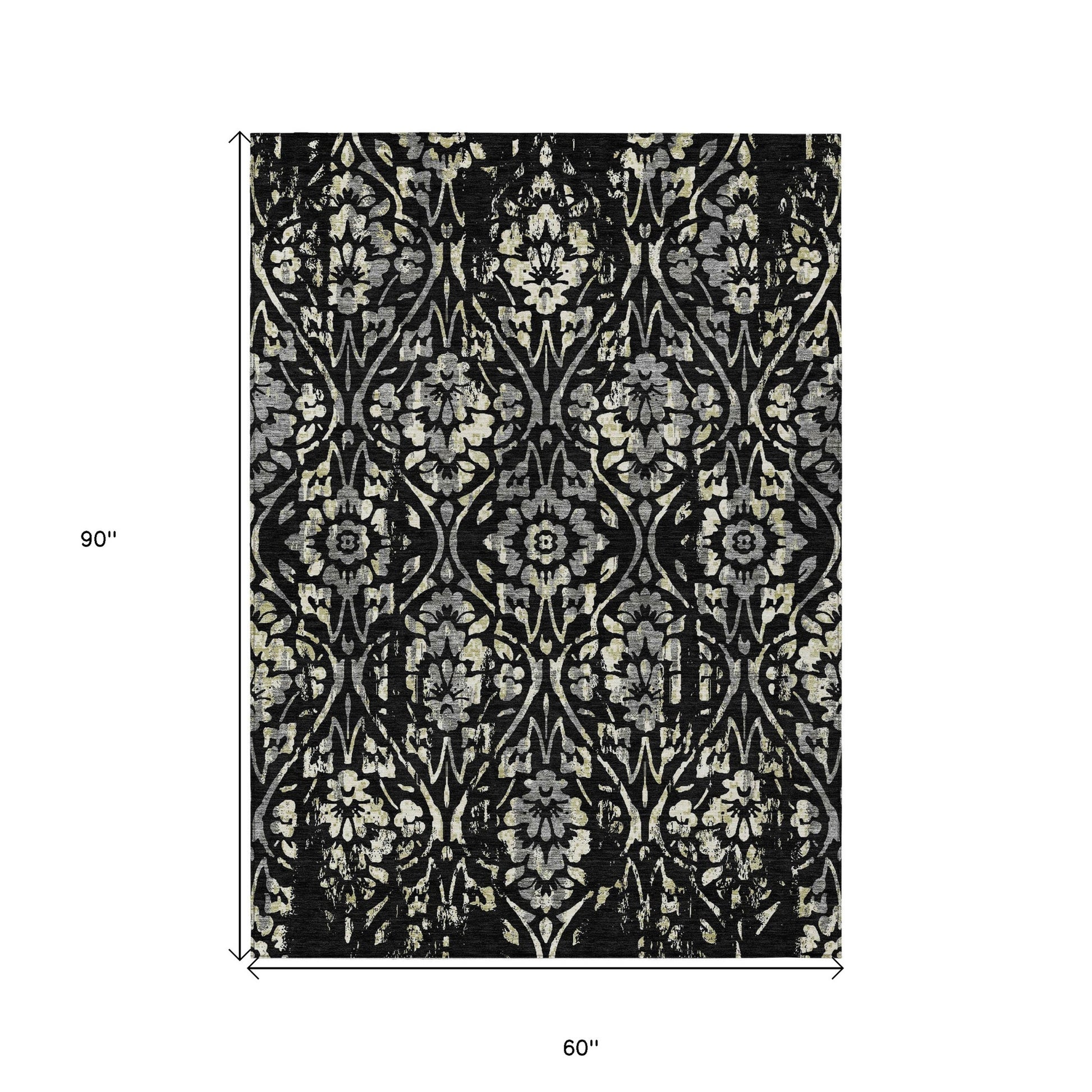 Tabselect Home Line 5' X 8' Black Gray And Ivory Floral Washable Indoor Outdoor Area Rug
