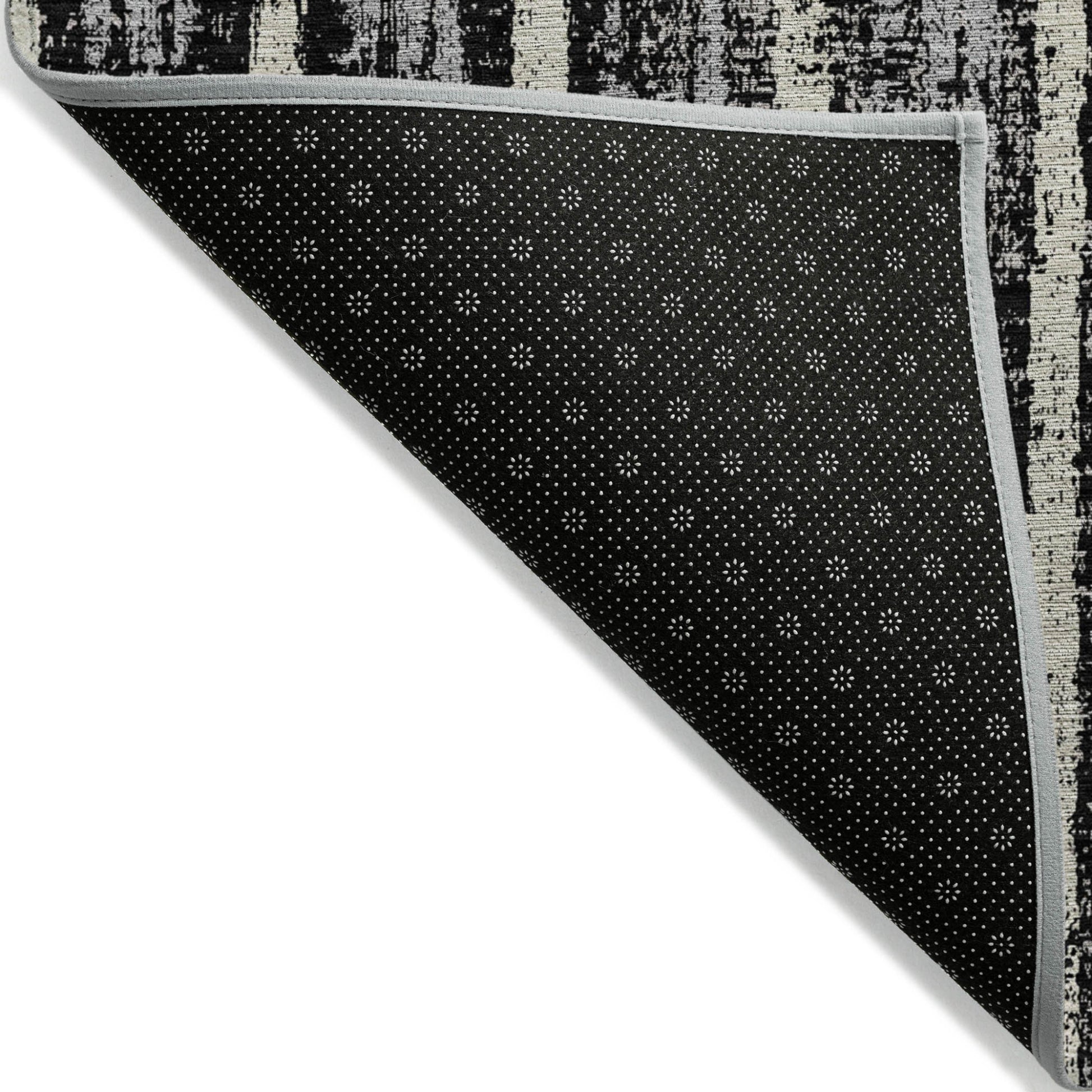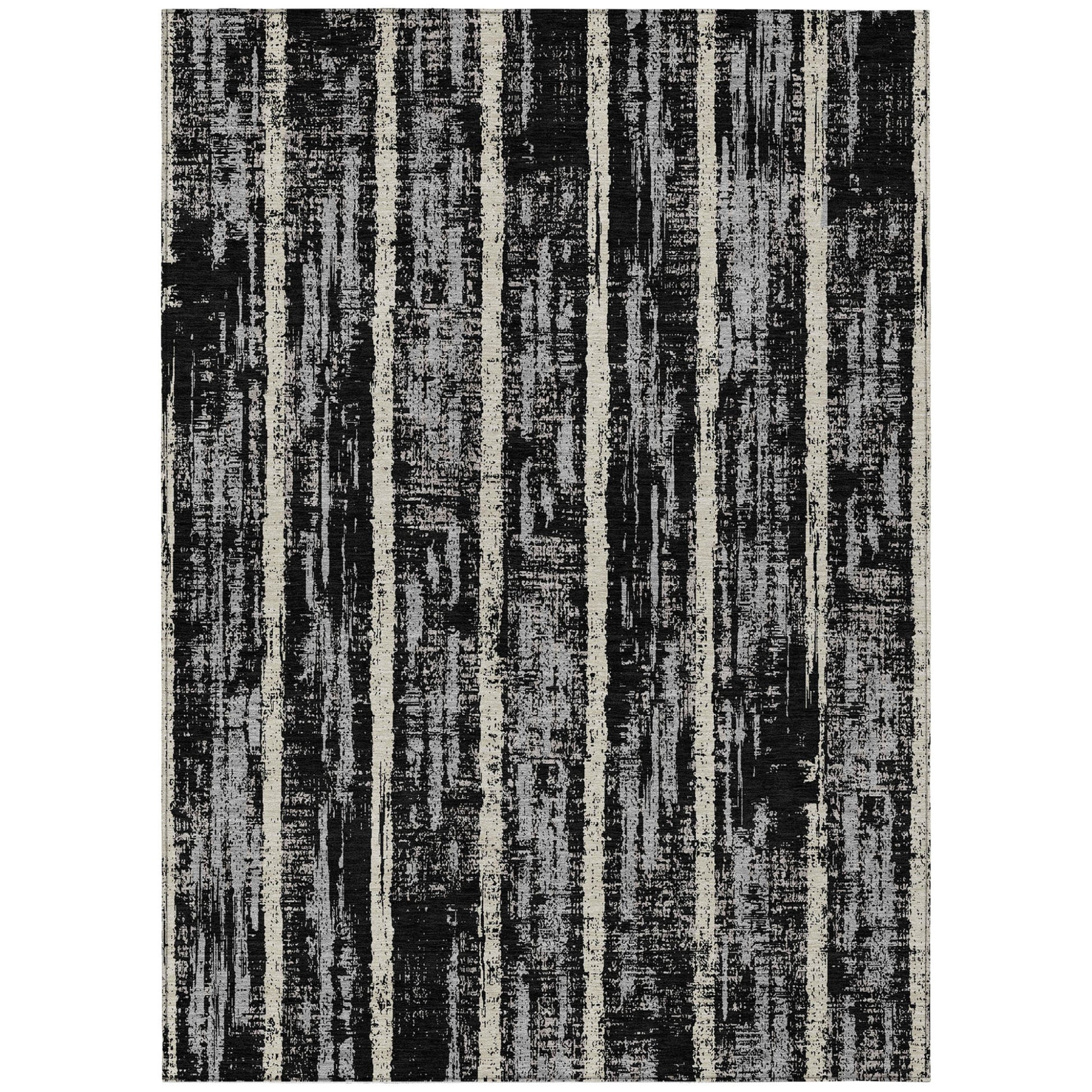 Tabselect Home Line 5' X 8' Black Gray And Ivory Striped Washable Indoor Outdoor Area Rug