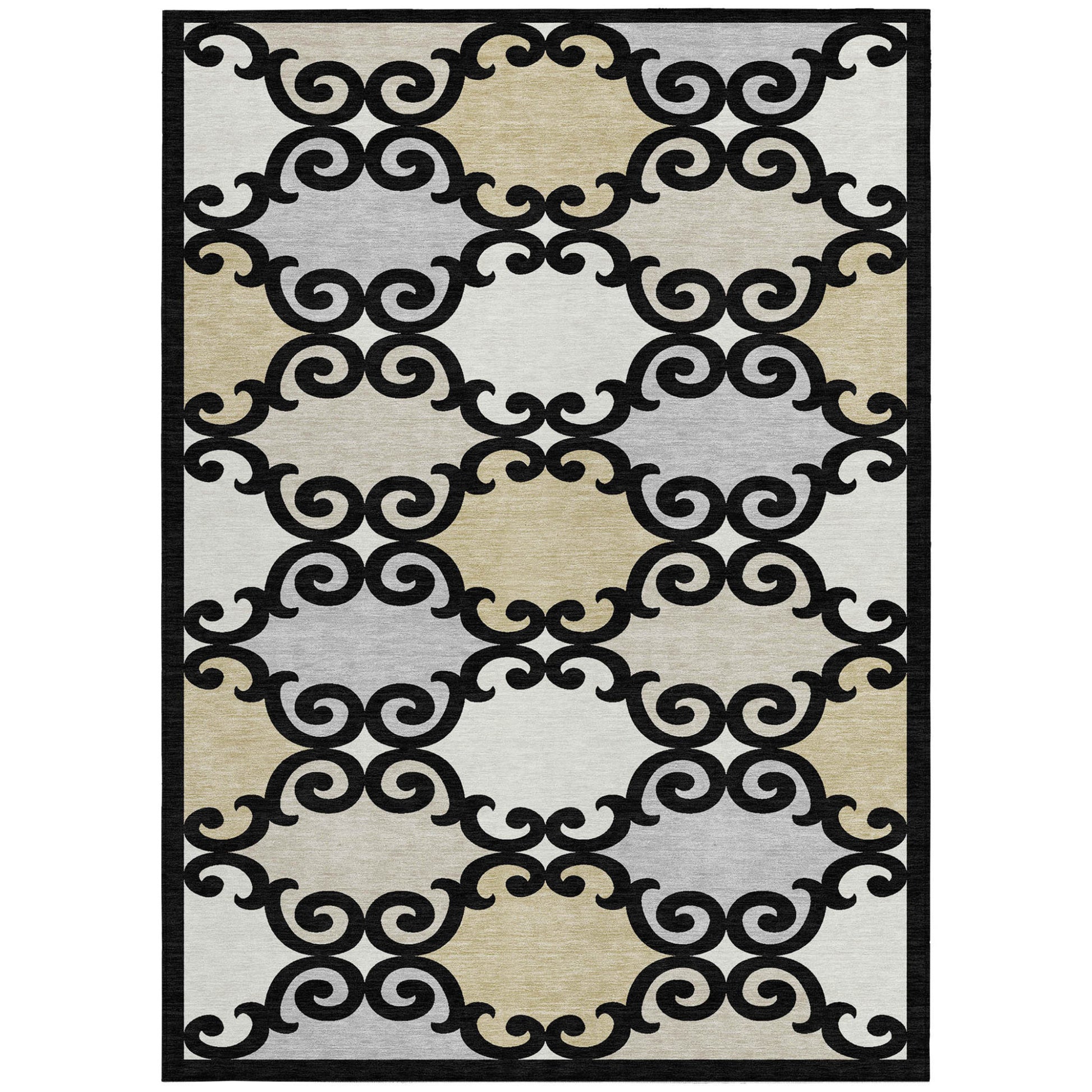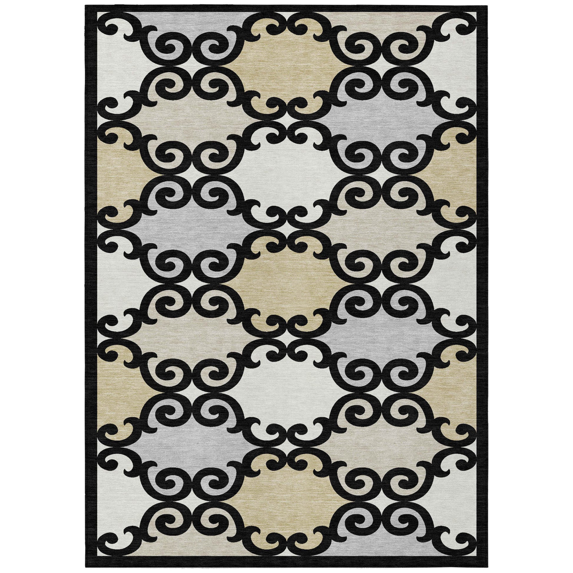 Tabselect Home Line 5' X 8' Black Gray And Ivory Trellis Washable Indoor Outdoor Area Rug