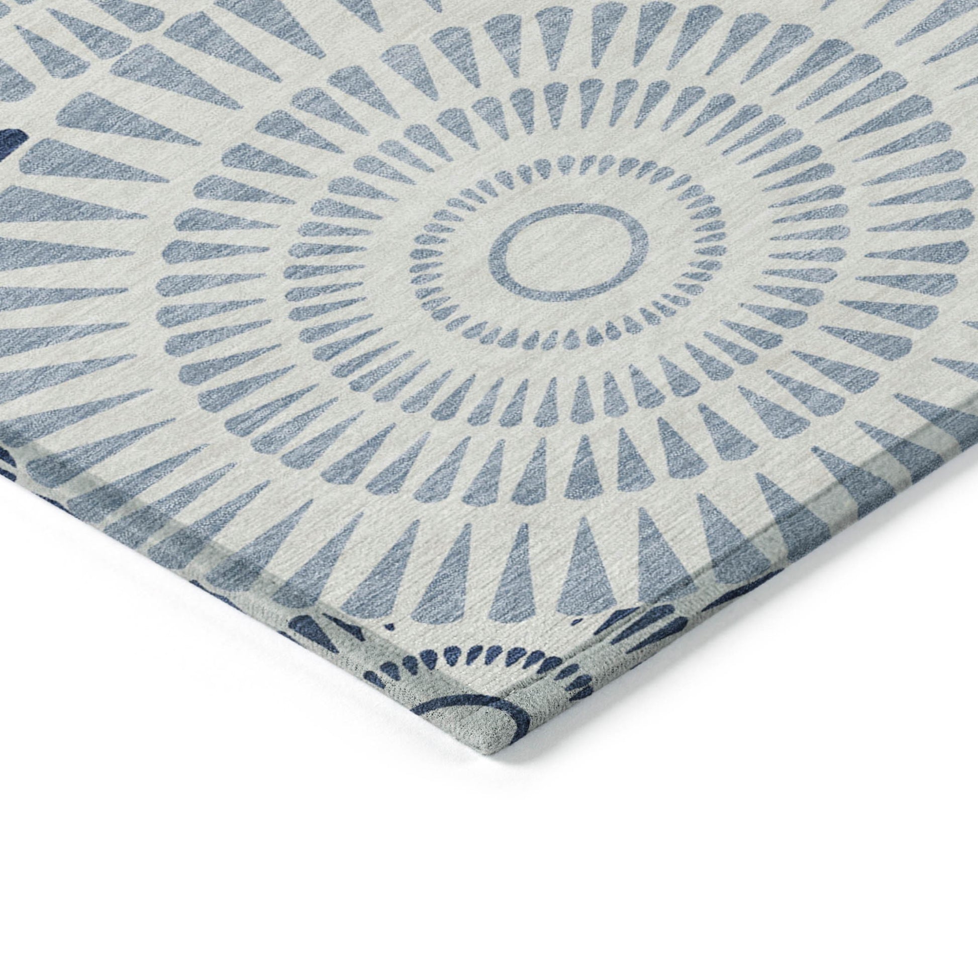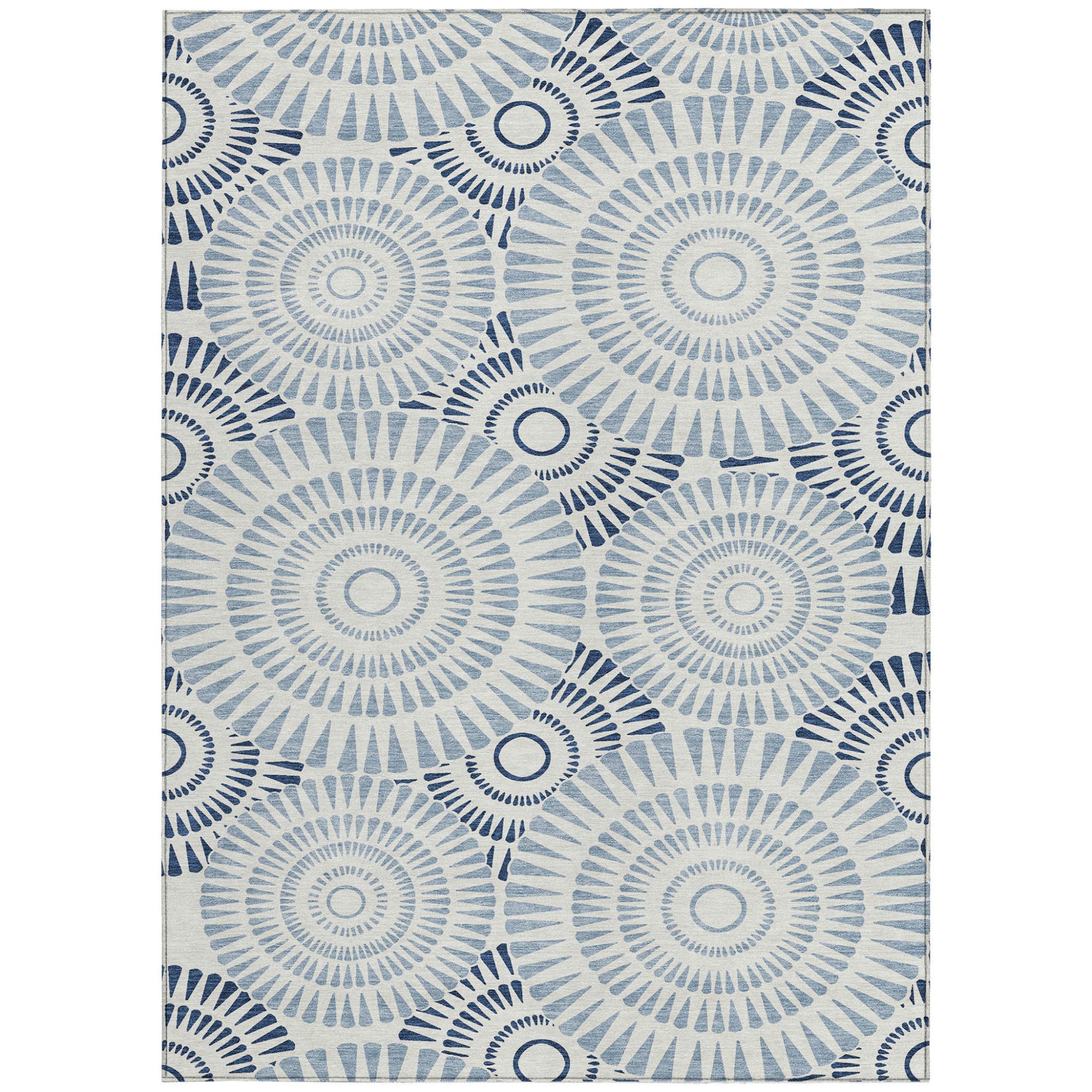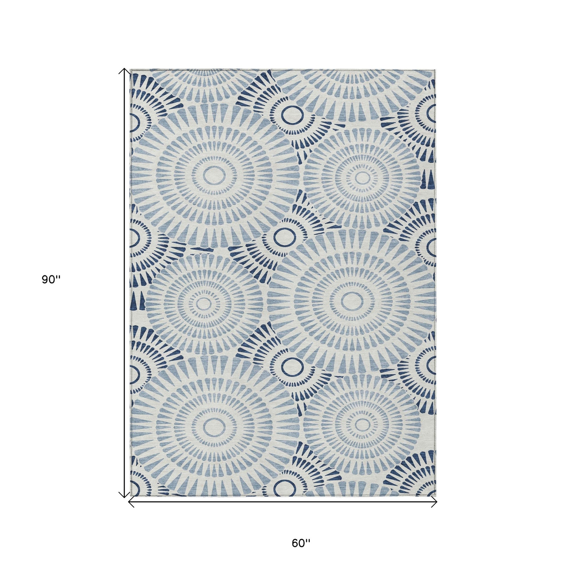 Tabselect Home Line 5' X 8' Blue And Ivory Geometric Washable Indoor Outdoor Area Rug