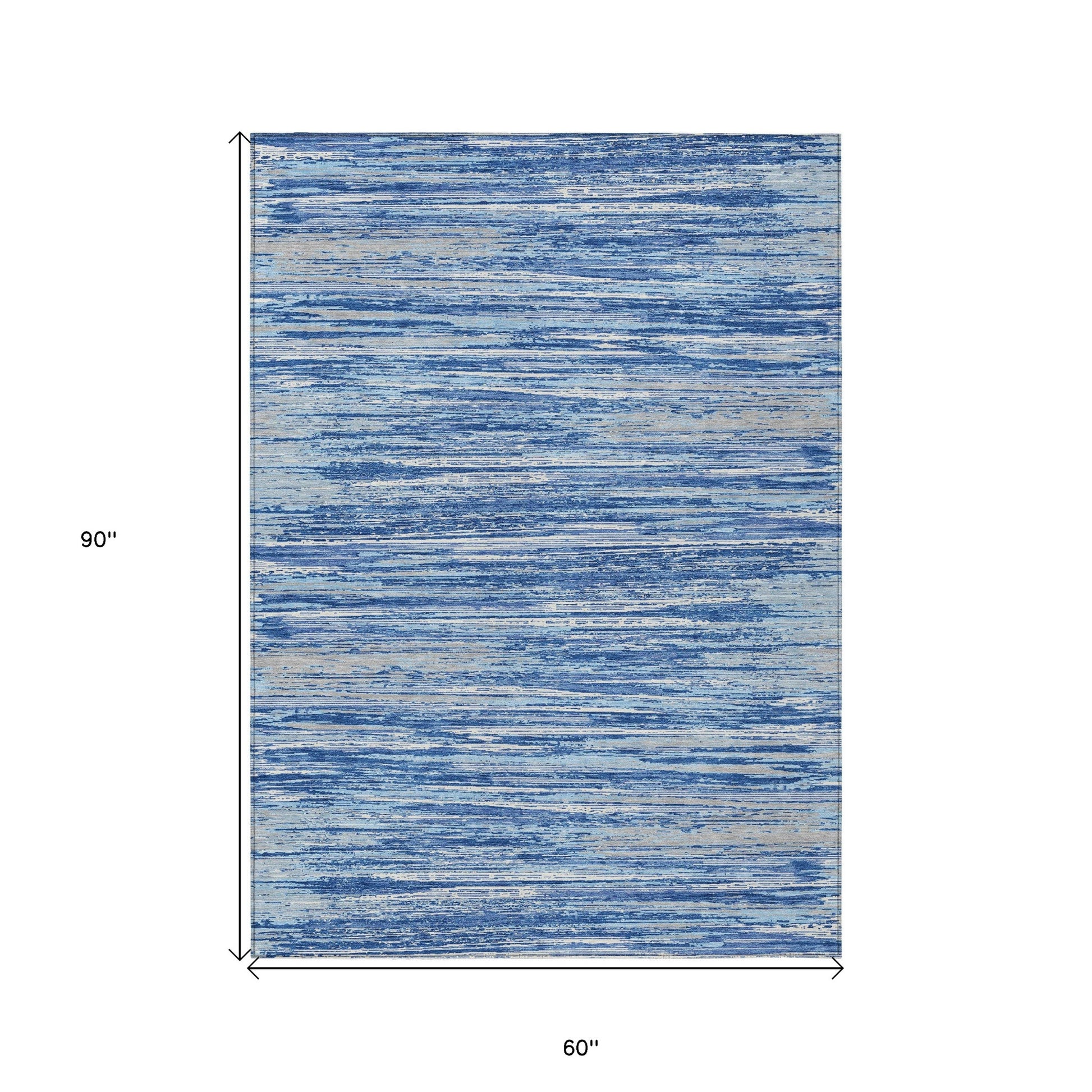 Tabselect Home Line 5' X 8' Blue Gray And Ivory Striped Washable Indoor Outdoor Area Rug