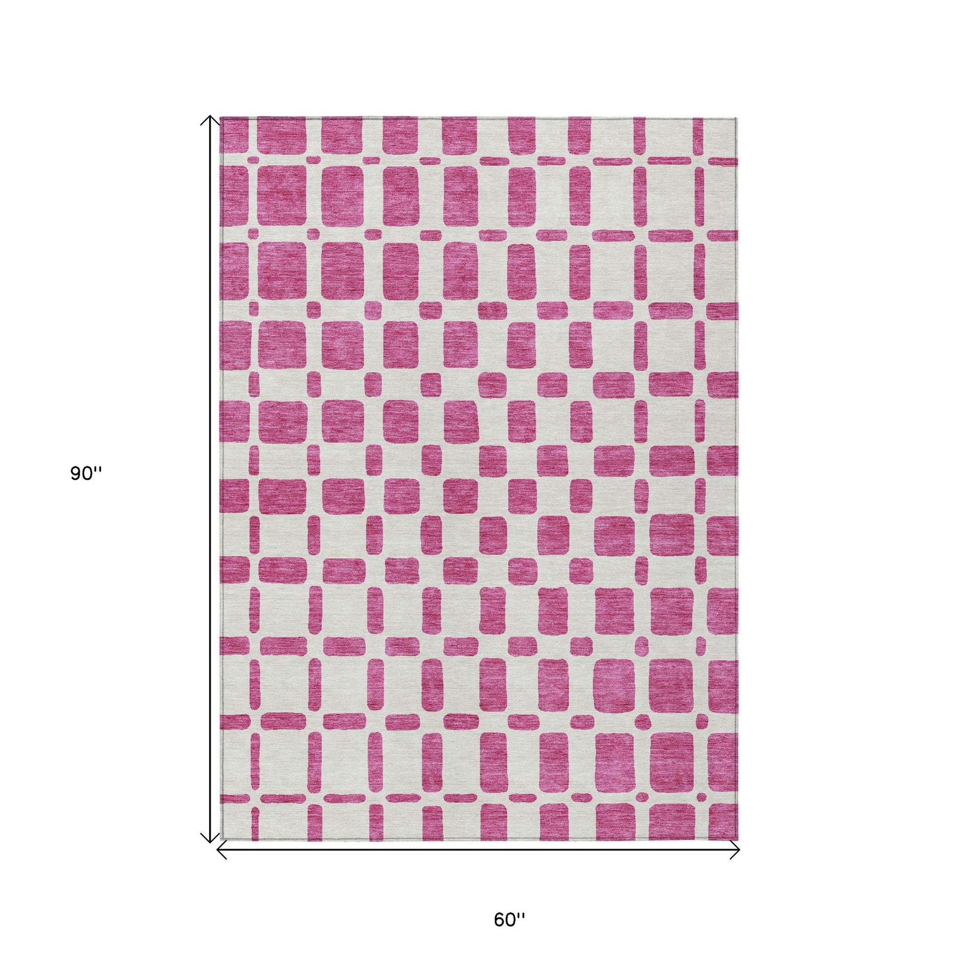 Tabselect Home Line 5' X 8' Blush And Ivory Geometric Washable Indoor Outdoor Area Rug