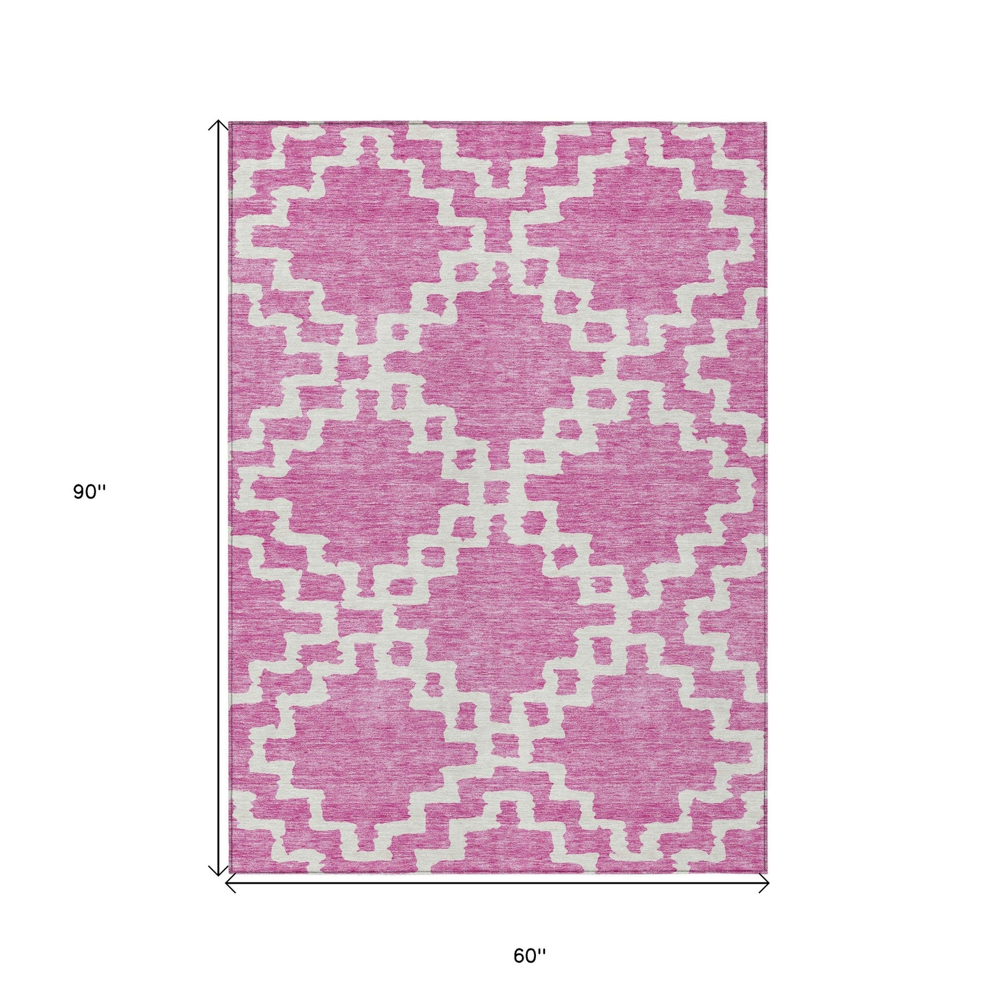 Tabselect Home Line 5' X 8' Blush And Ivory Geometric Washable Indoor Outdoor Area Rug