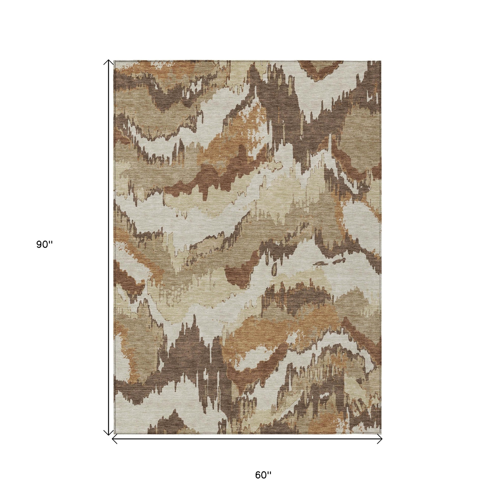 Tabselect Home Line 5' X 8' Brown And Beige Abstract Washable Indoor Outdoor Area Rug