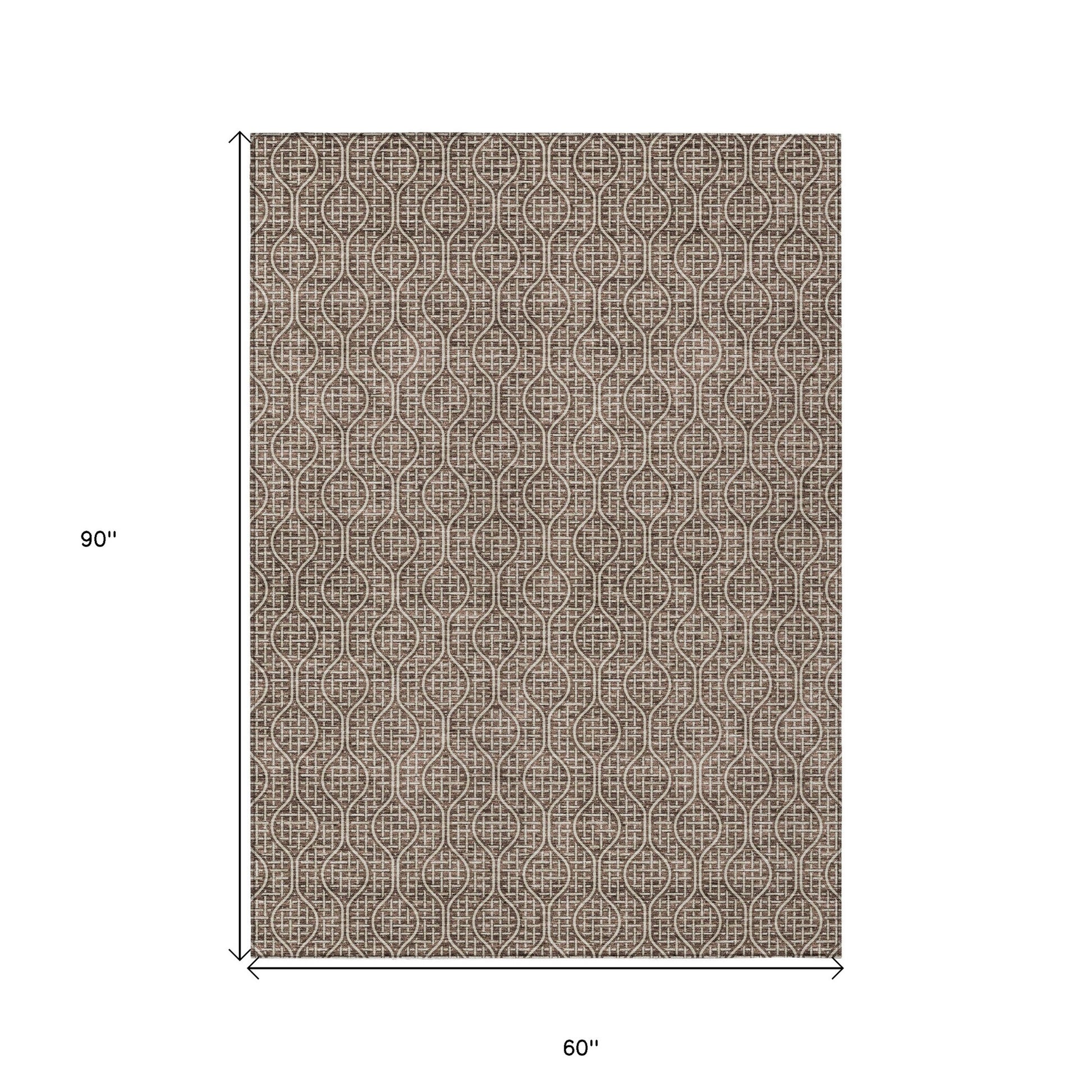 Tabselect Home Line 5' X 8' Brown And Beige Geometric Washable Indoor Outdoor Area Rug