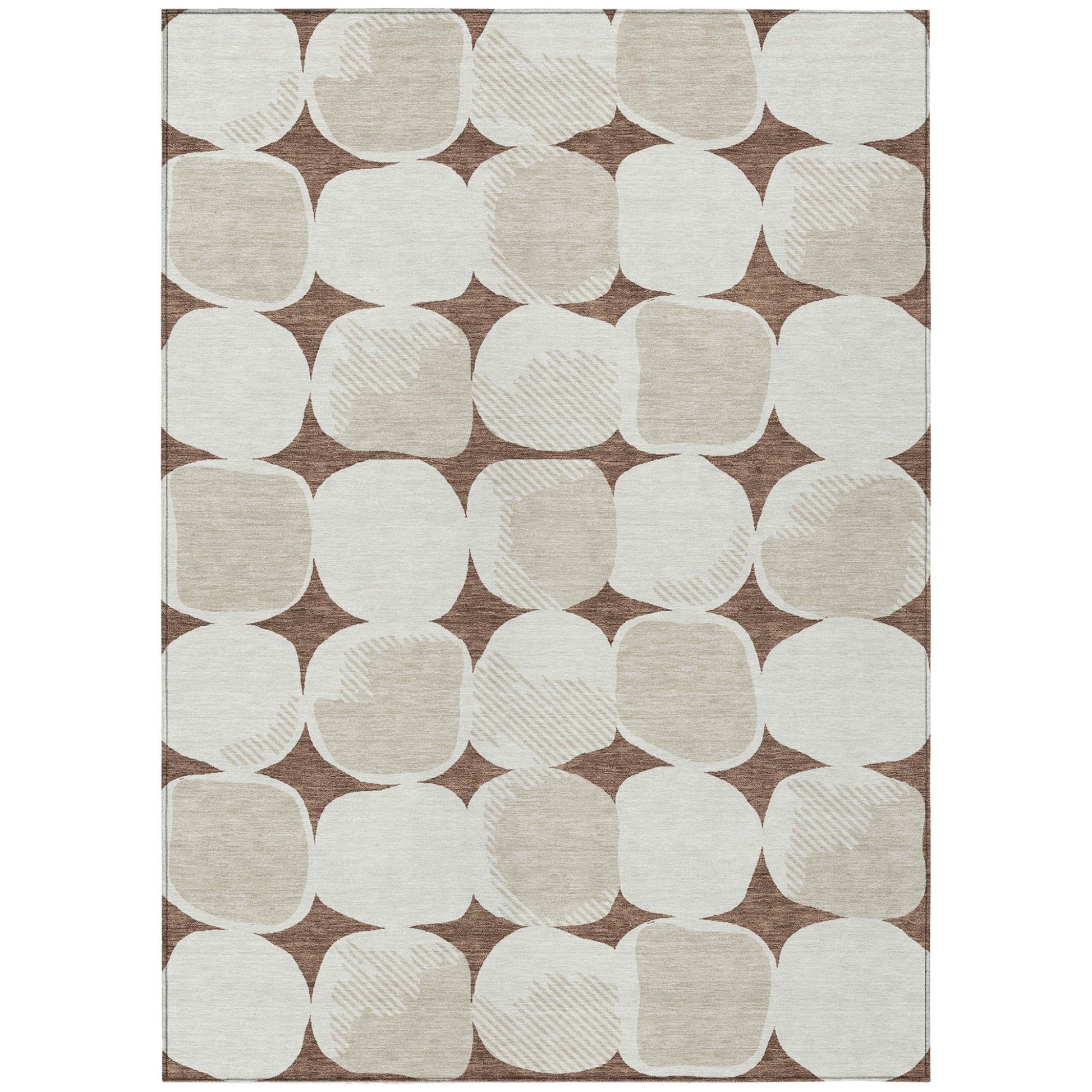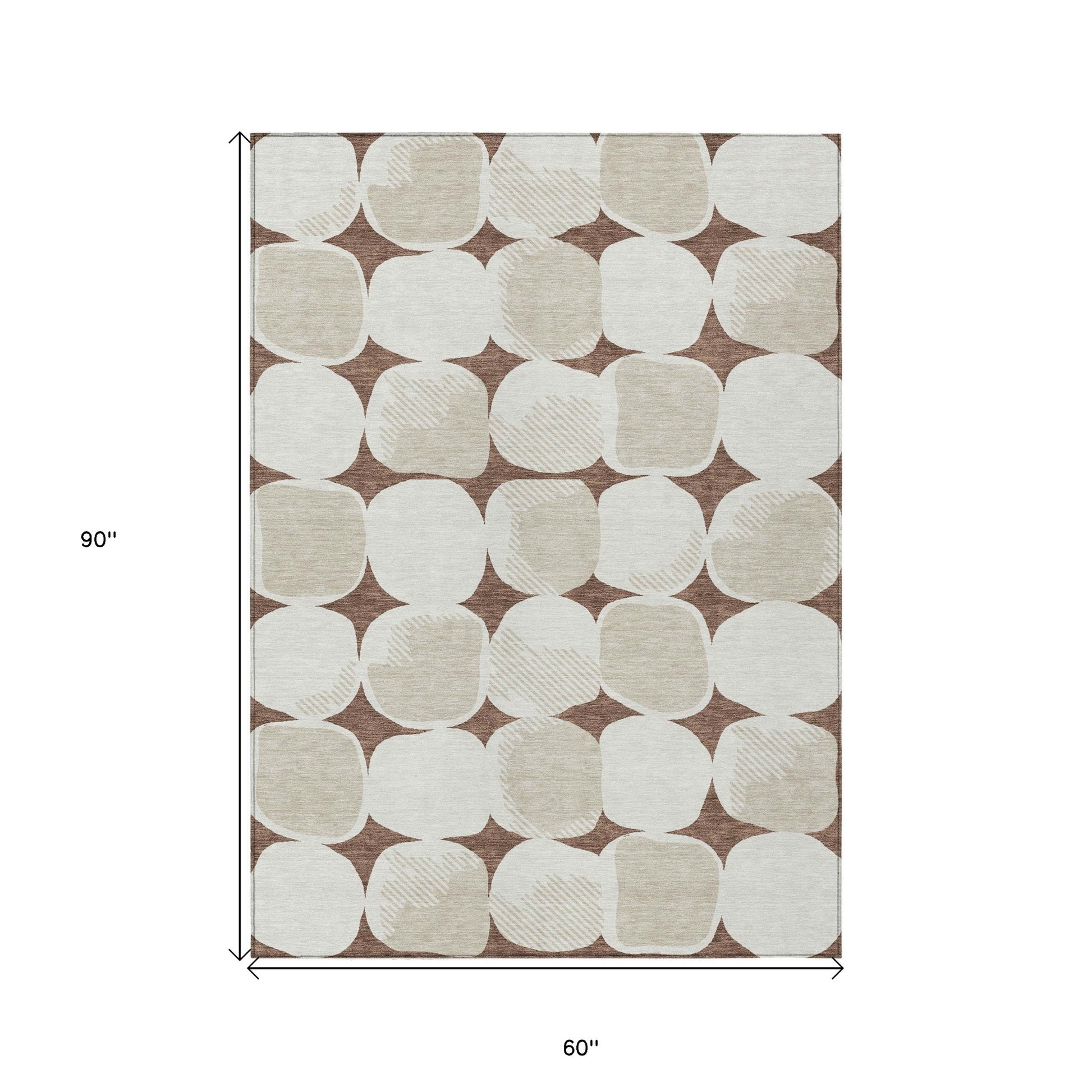 Tabselect Home Line 5' X 8' Brown Beige And Ivory Abstract Washable Indoor Outdoor Area Rug