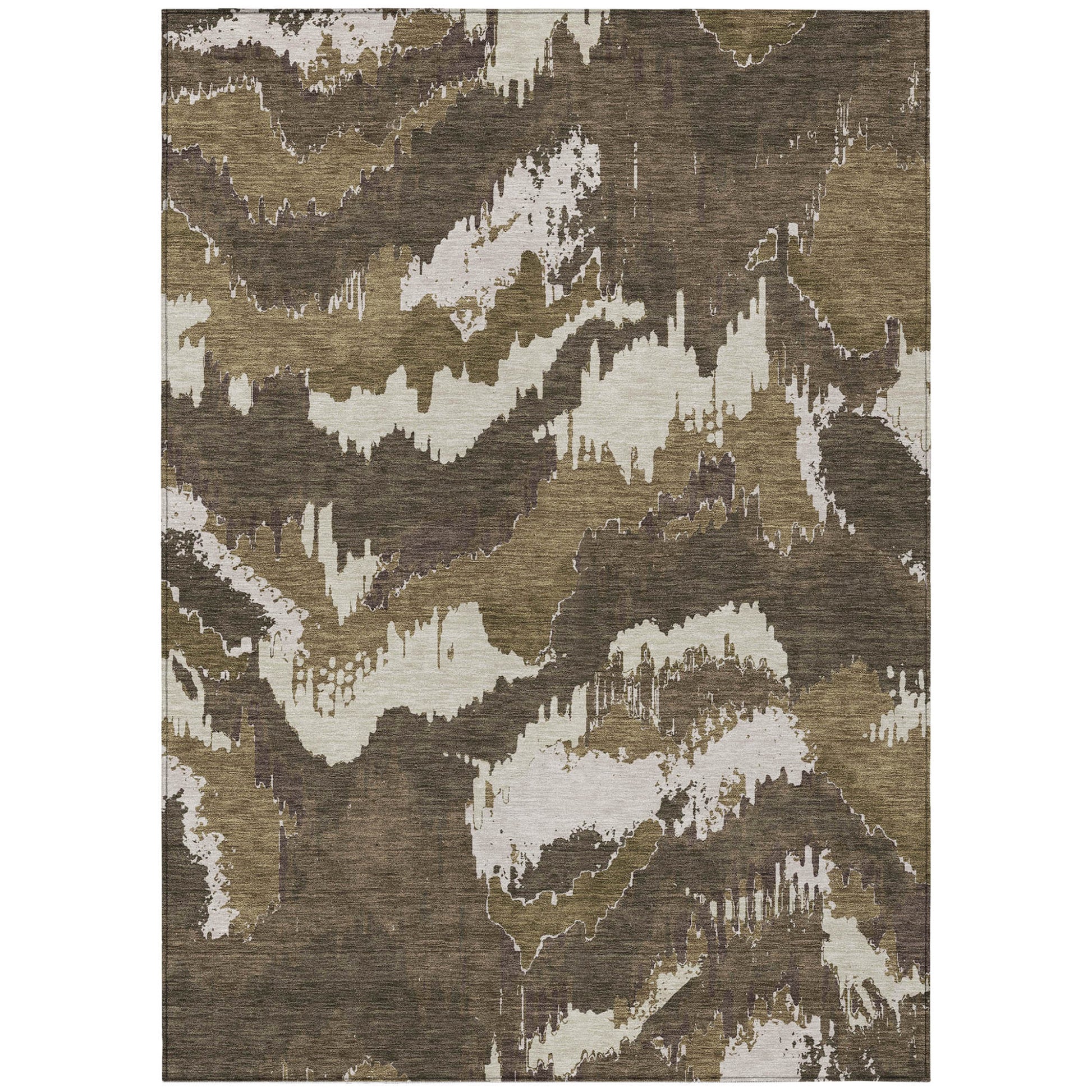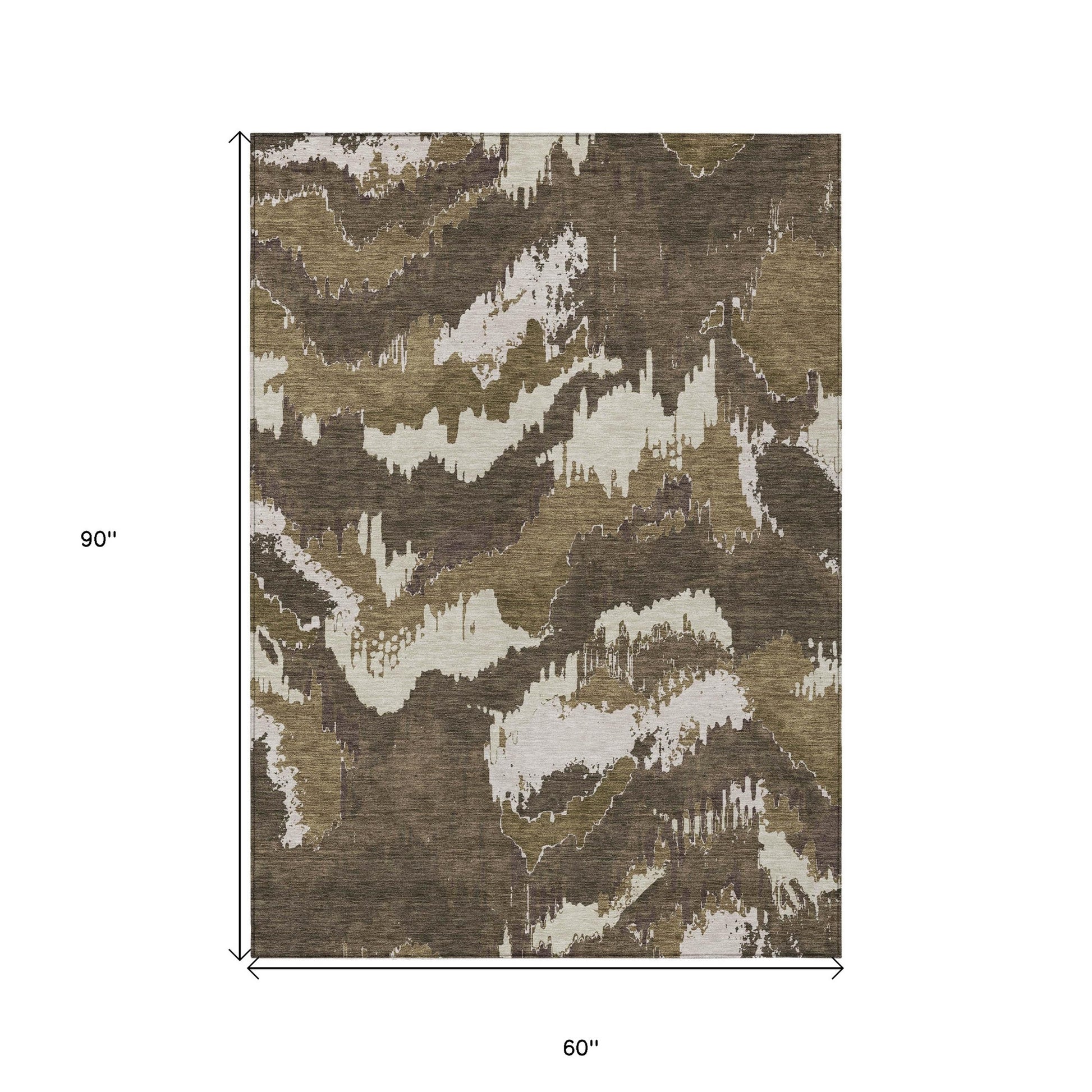 Tabselect Home Line 5' X 8' Brown Beige And Taupe Abstract Washable Indoor Outdoor Area Rug