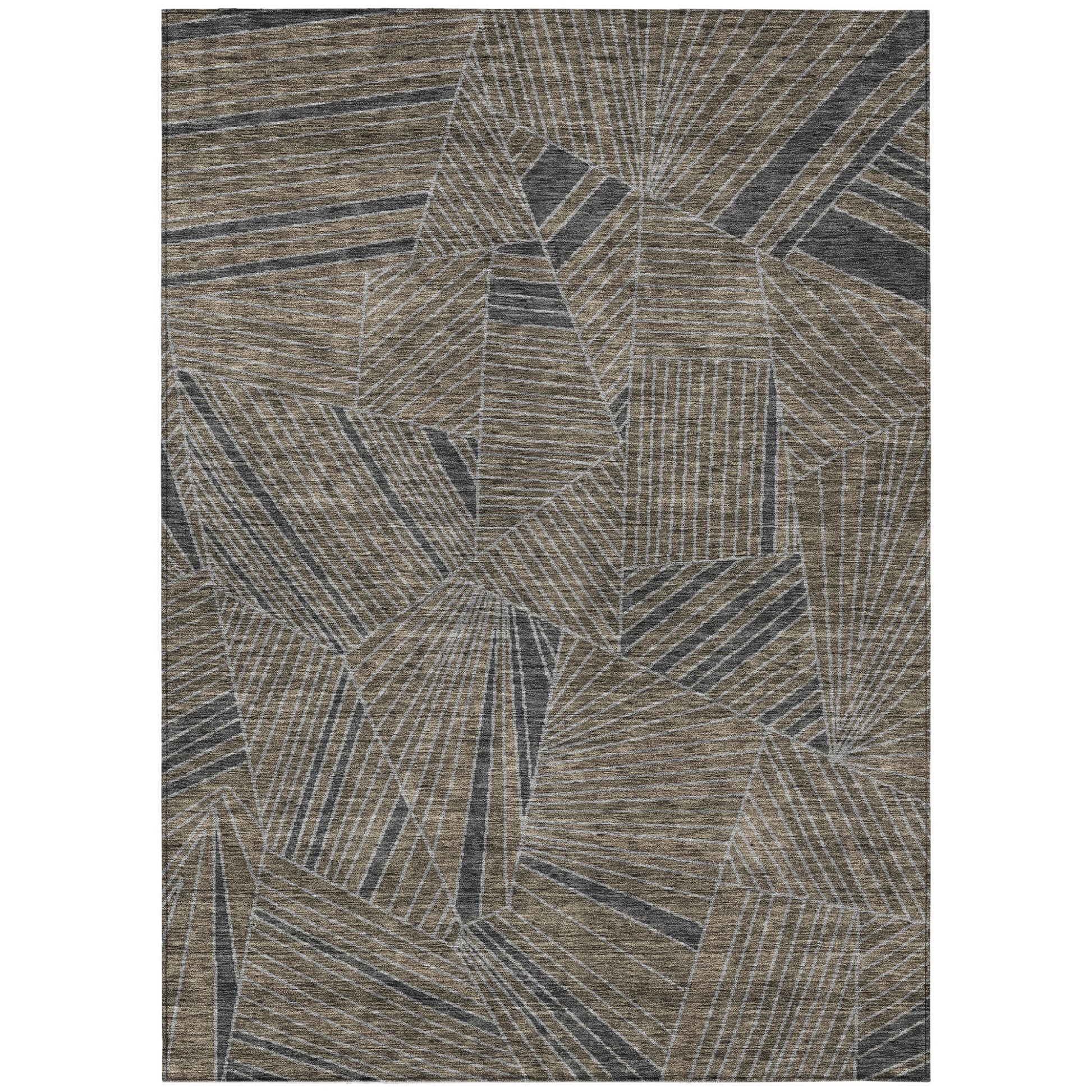 Tabselect Home Line 5' X 8' Brown Black And Gray Geometric Washable Indoor Outdoor Area Rug