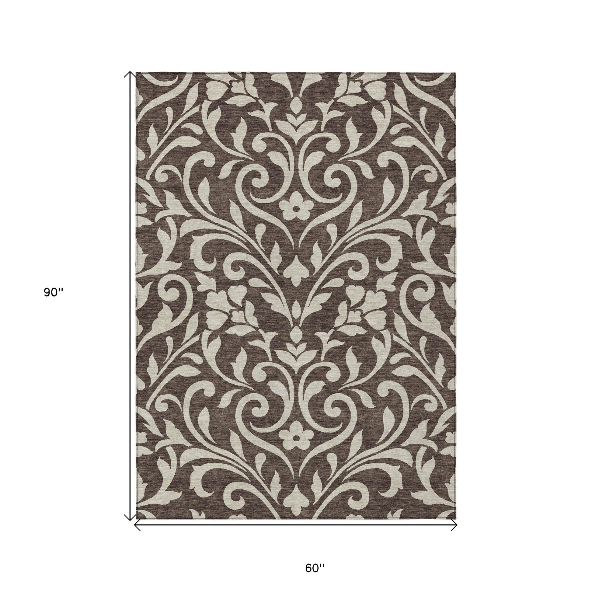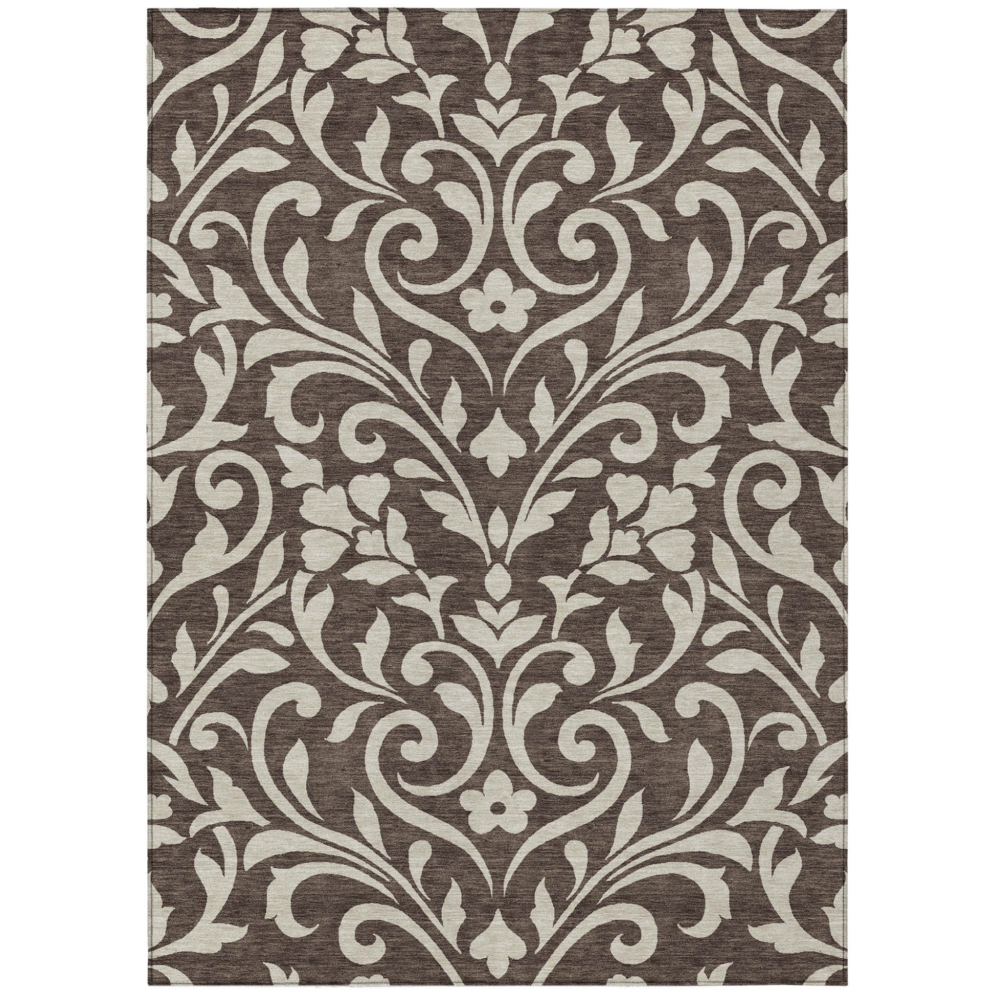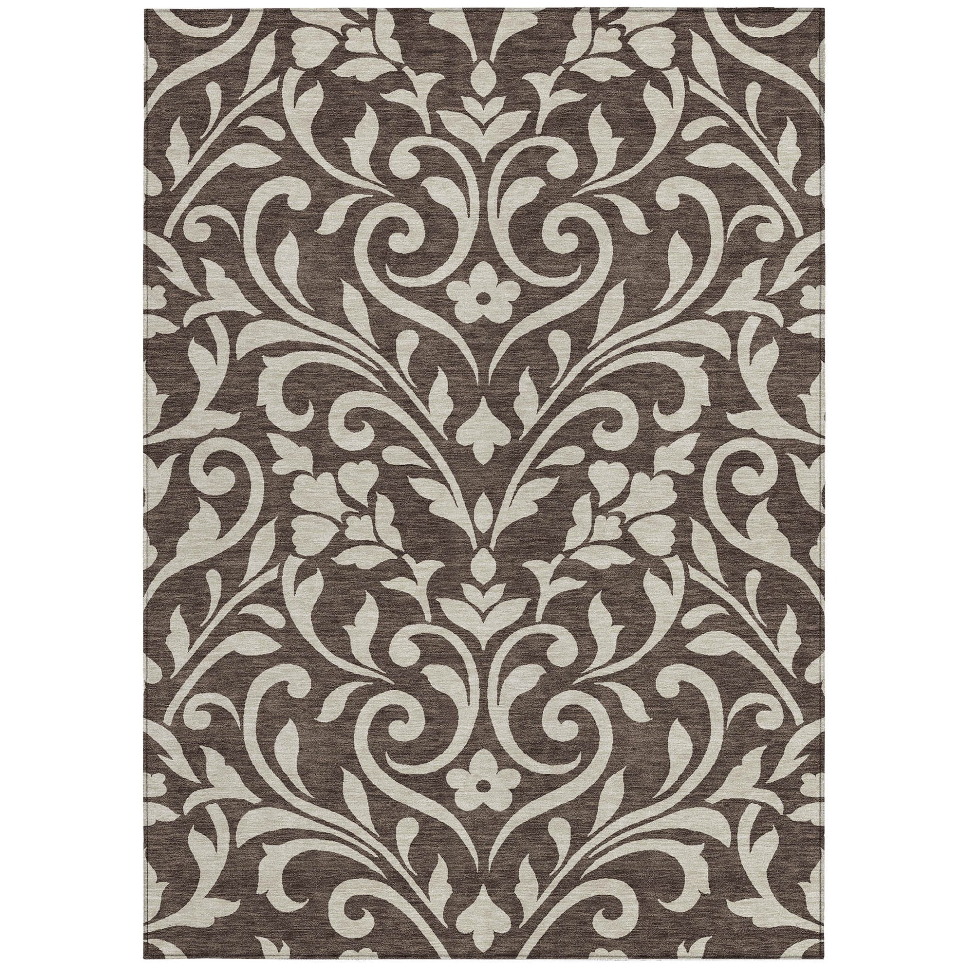 Tabselect Home Line 5' X 8' Chocolate And Ivory Floral Washable Indoor Outdoor Area Rug