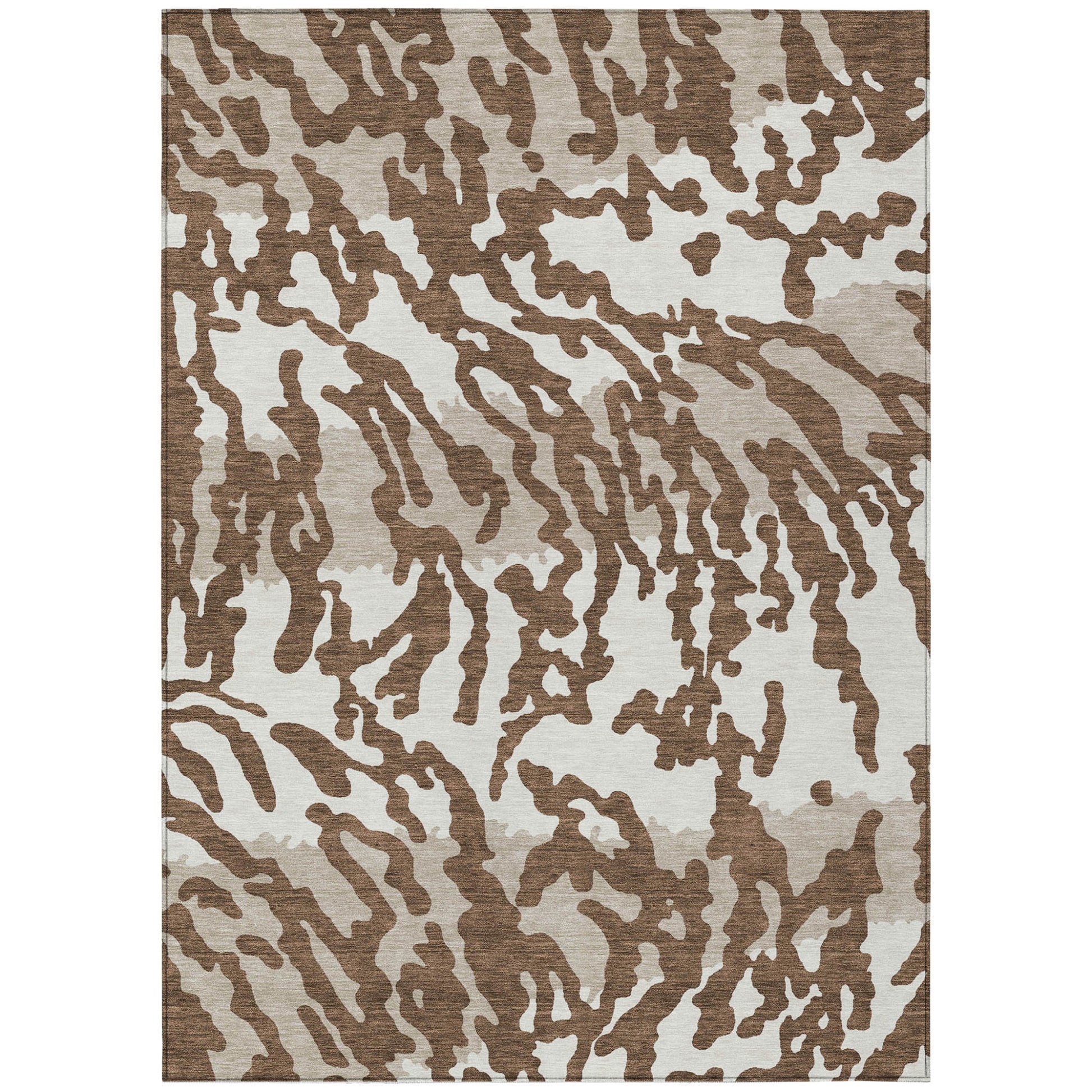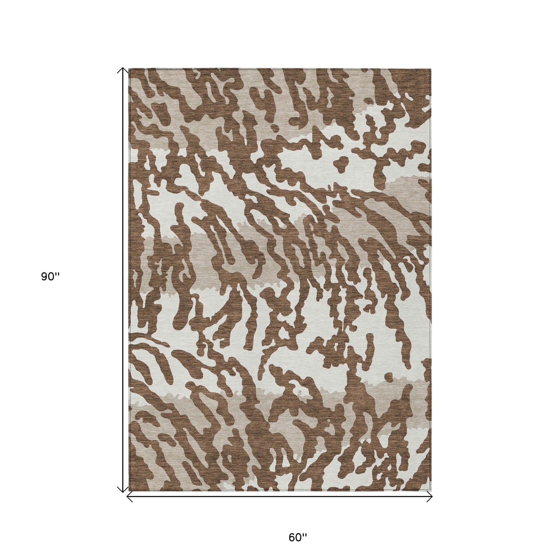 Tabselect Home Line 5' X 8' Chocolate Beige And Ivory Animal Print Washable Indoor Outdoor Area Rug