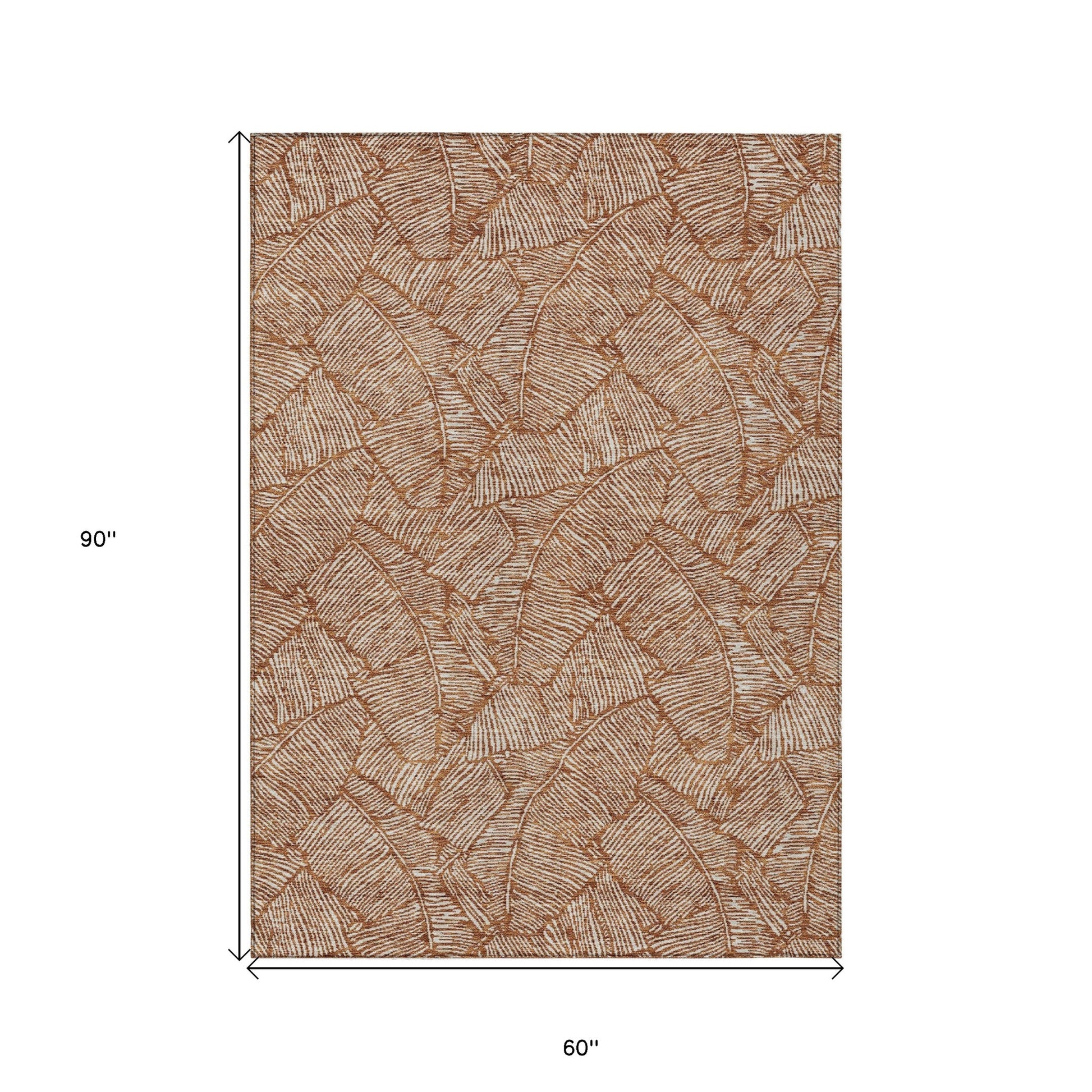 Tabselect Home Line 5' X 8' Copper And Beige Floral Washable Indoor Outdoor Area Rug