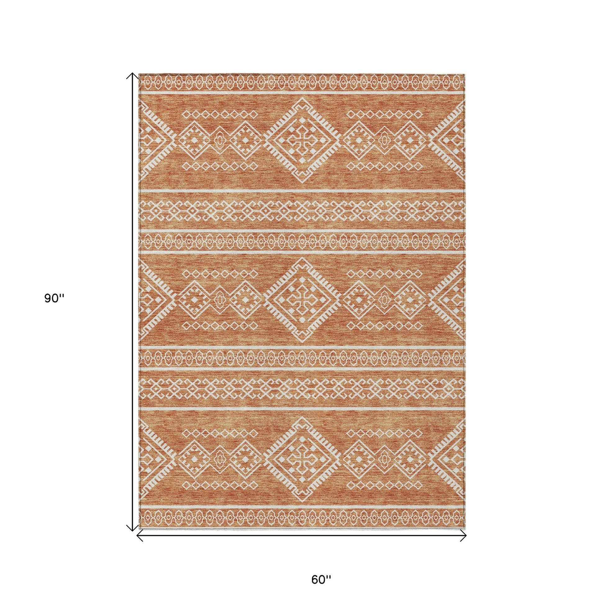 Tabselect Home Line 5' X 8' Copper And Ivory Southwestern Washable Indoor Outdoor Area Rug