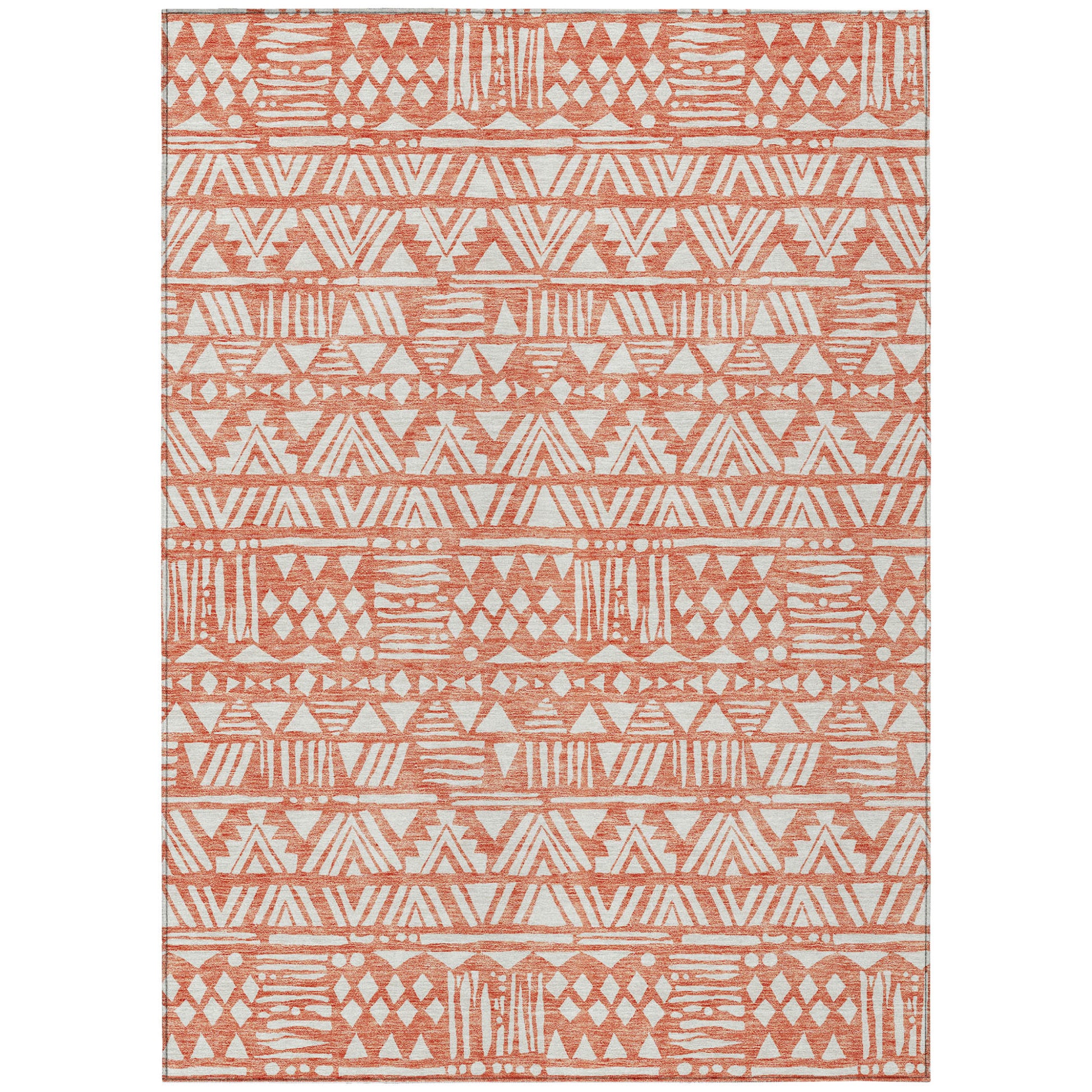 Tabselect Home Line 5' X 8' Coral And Ivory Southwestern Washable Indoor Outdoor Area Rug