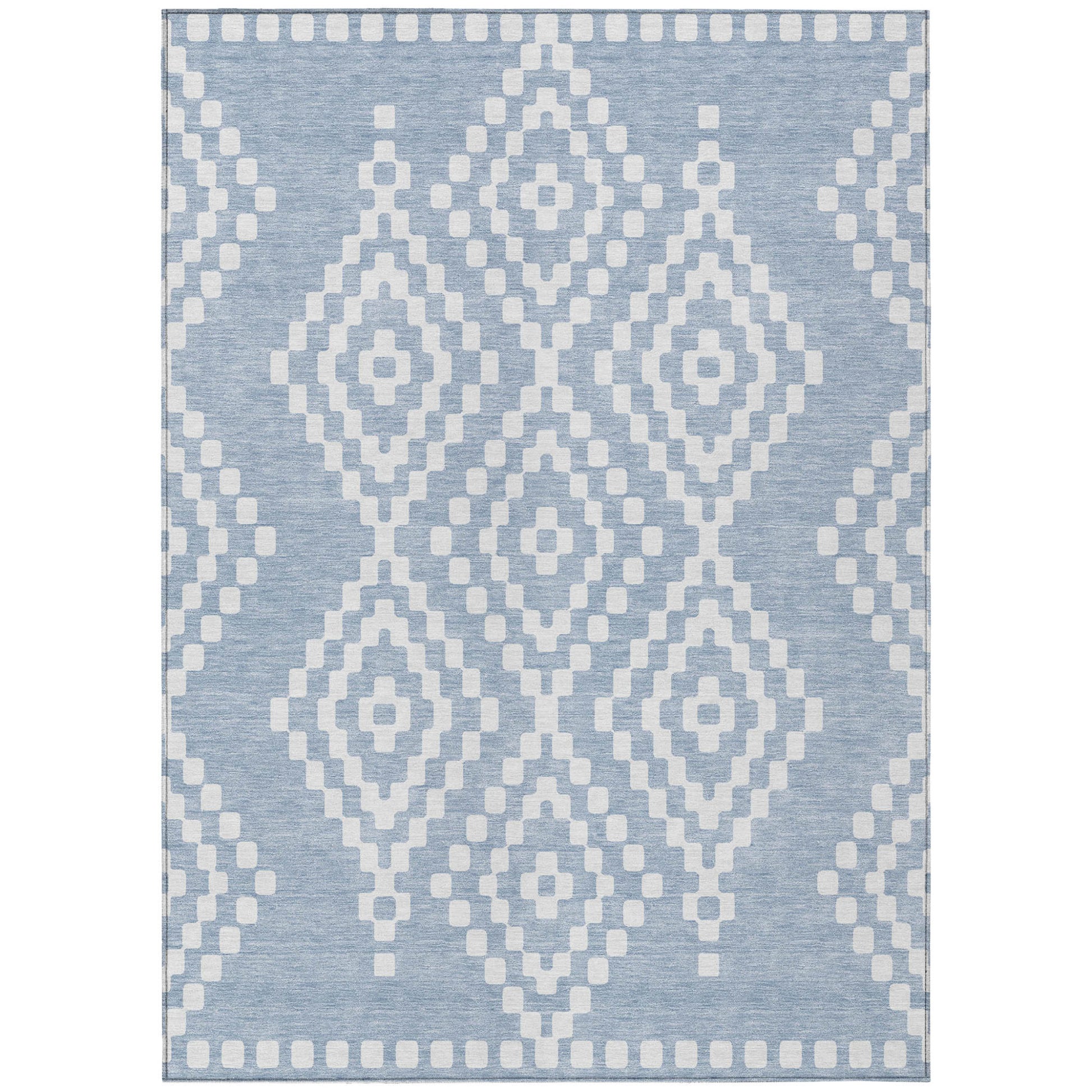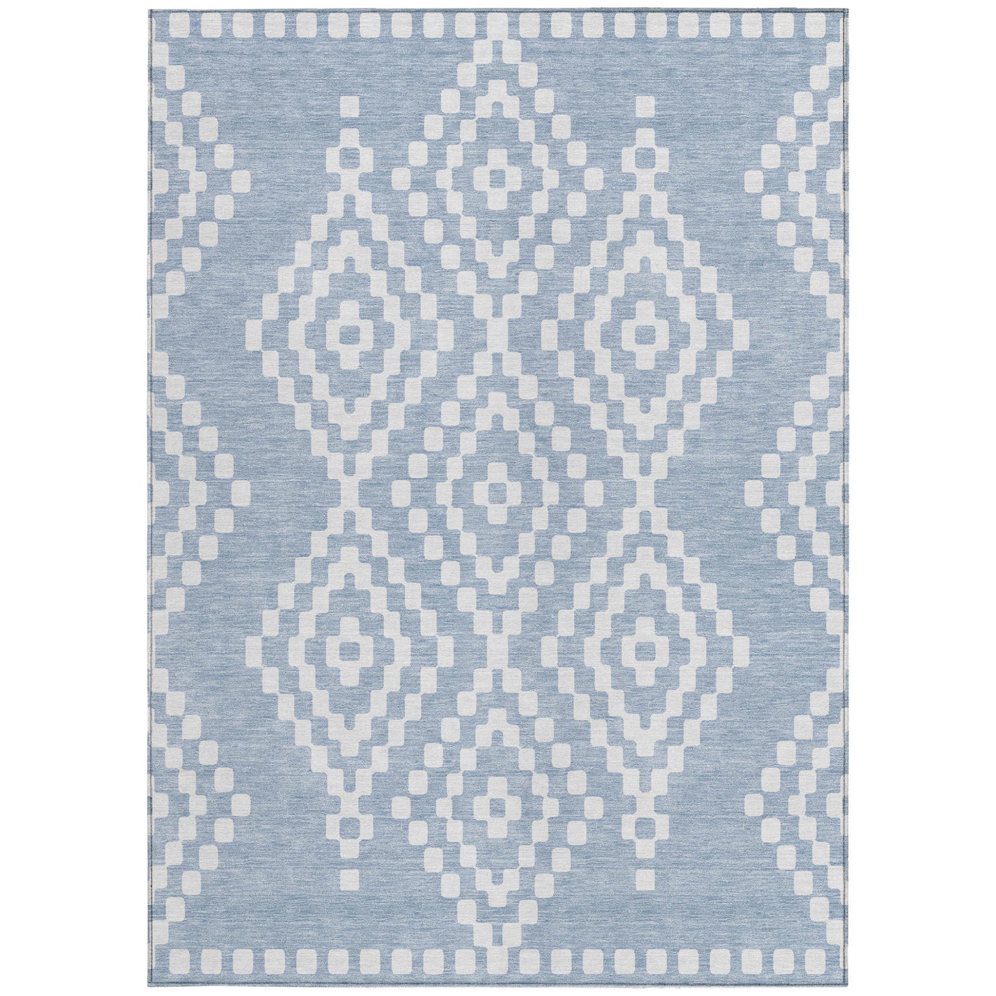 Tabselect Home Line 5' X 8' Denim Blue And Ivory Geometric Washable Indoor Outdoor Area Rug