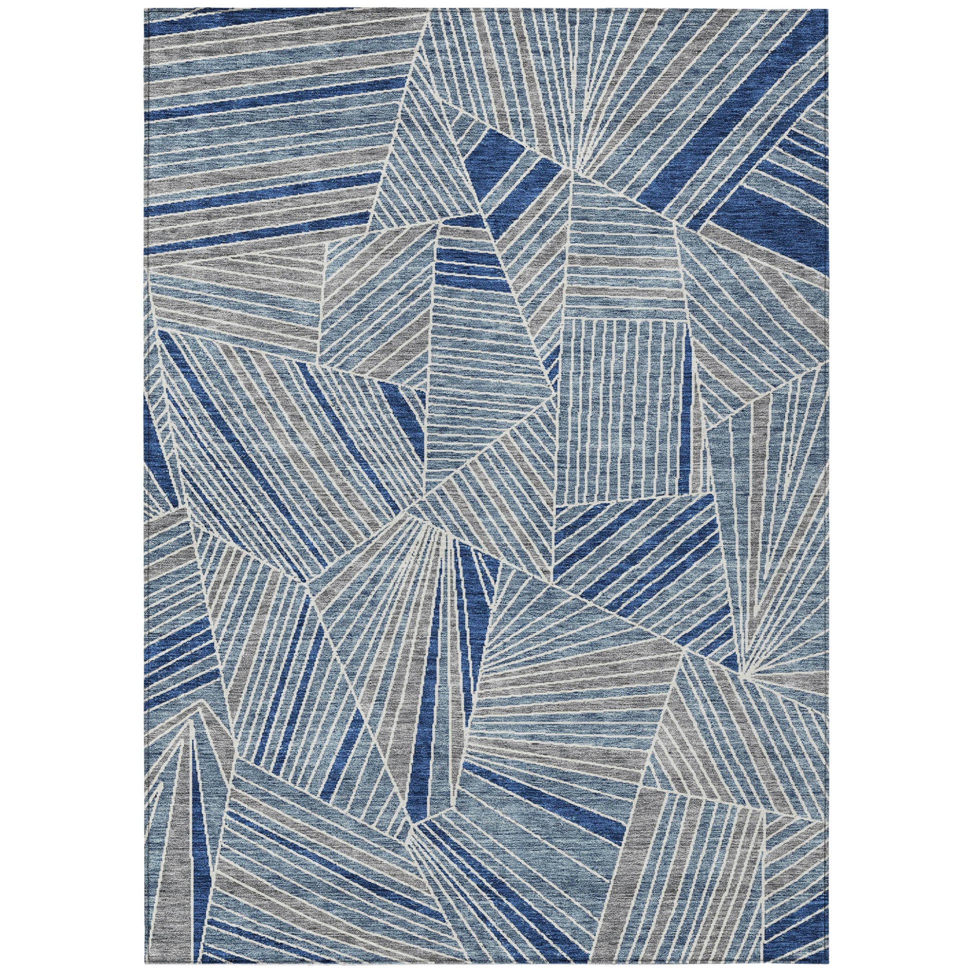 Tabselect Home Line 5' X 8' Denim Blue Gray And Ivory Geometric Washable Indoor Outdoor Area Rug