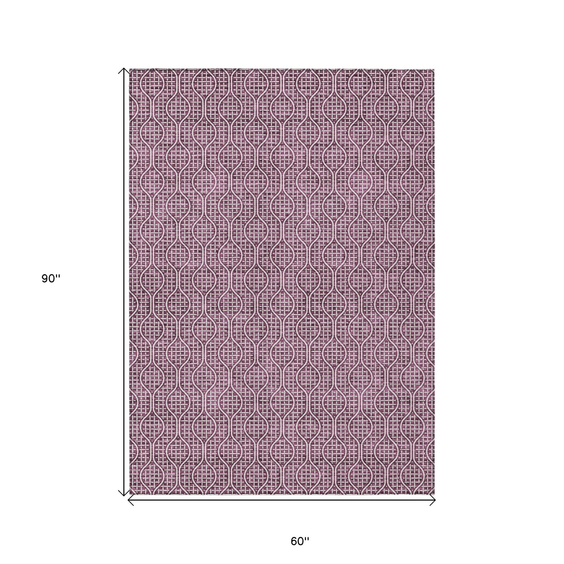 Tabselect Home Line 5' X 8' Eggplant And Ivory Geometric Washable Indoor Outdoor Area Rug