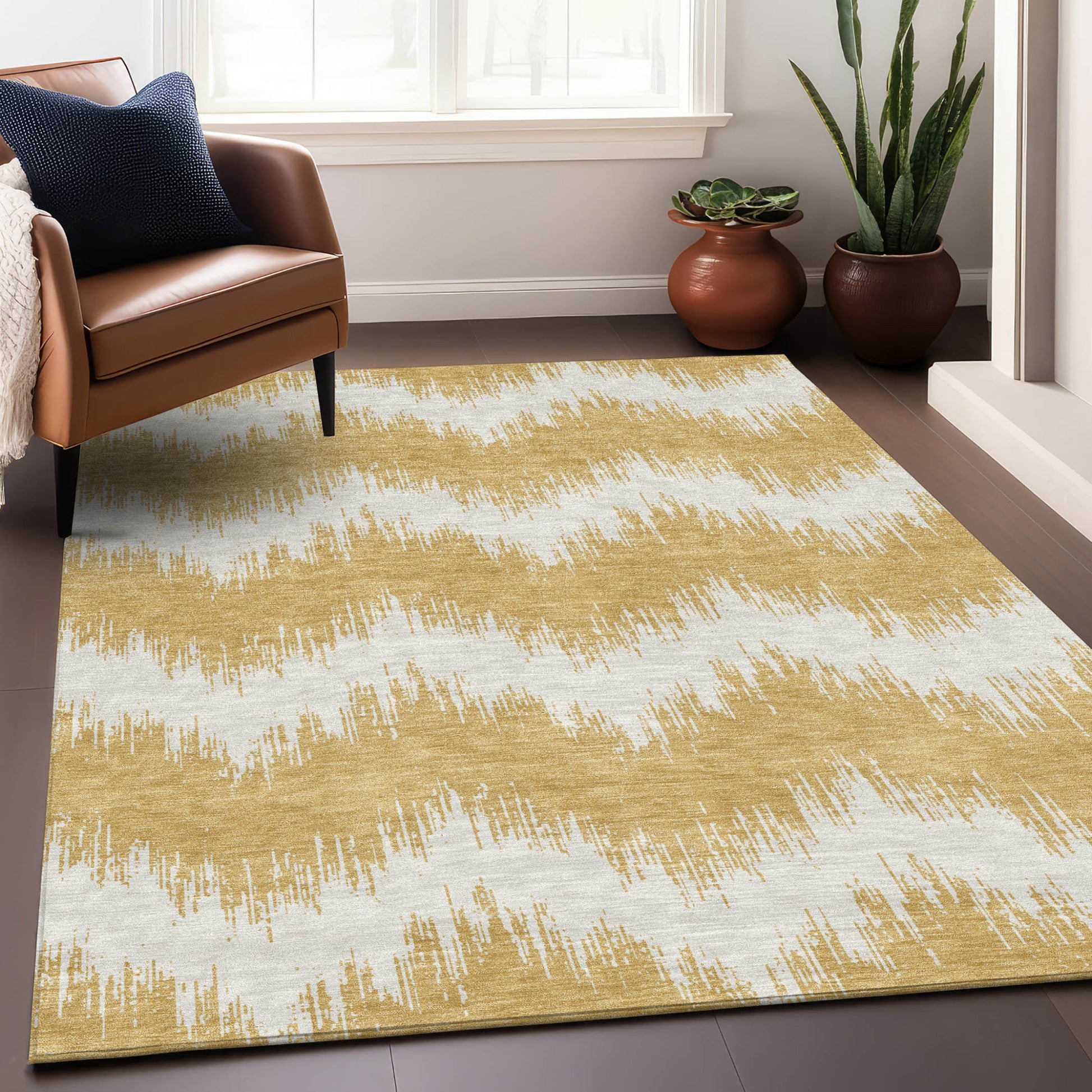 Tabselect Home Line 5' X 8' Gold And Ivory Chevron Washable Indoor Outdoor Area Rug
