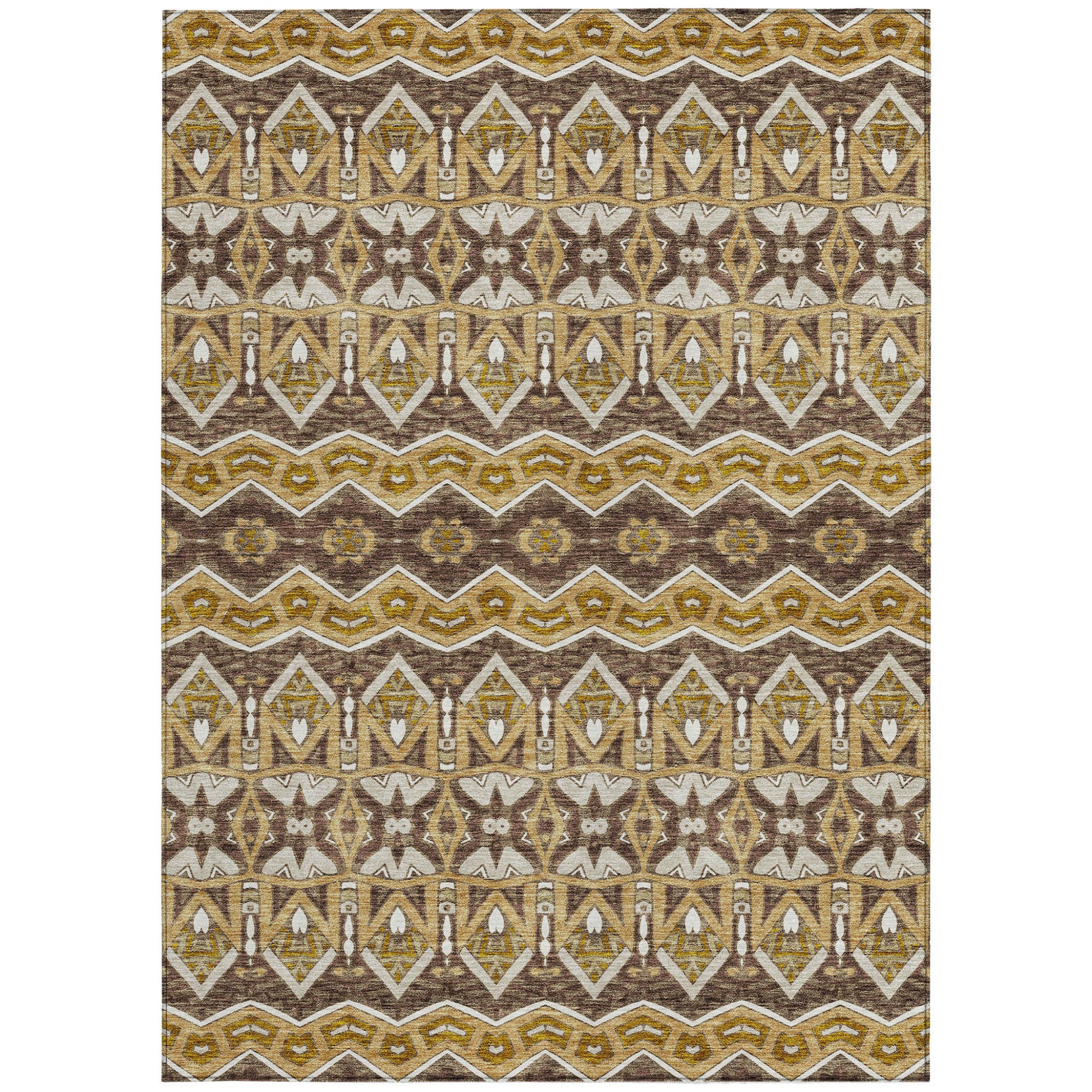 Tabselect Home Line 5' X 8' Gold Brown And Beige Moroccan Washable Indoor Outdoor Area Rug
