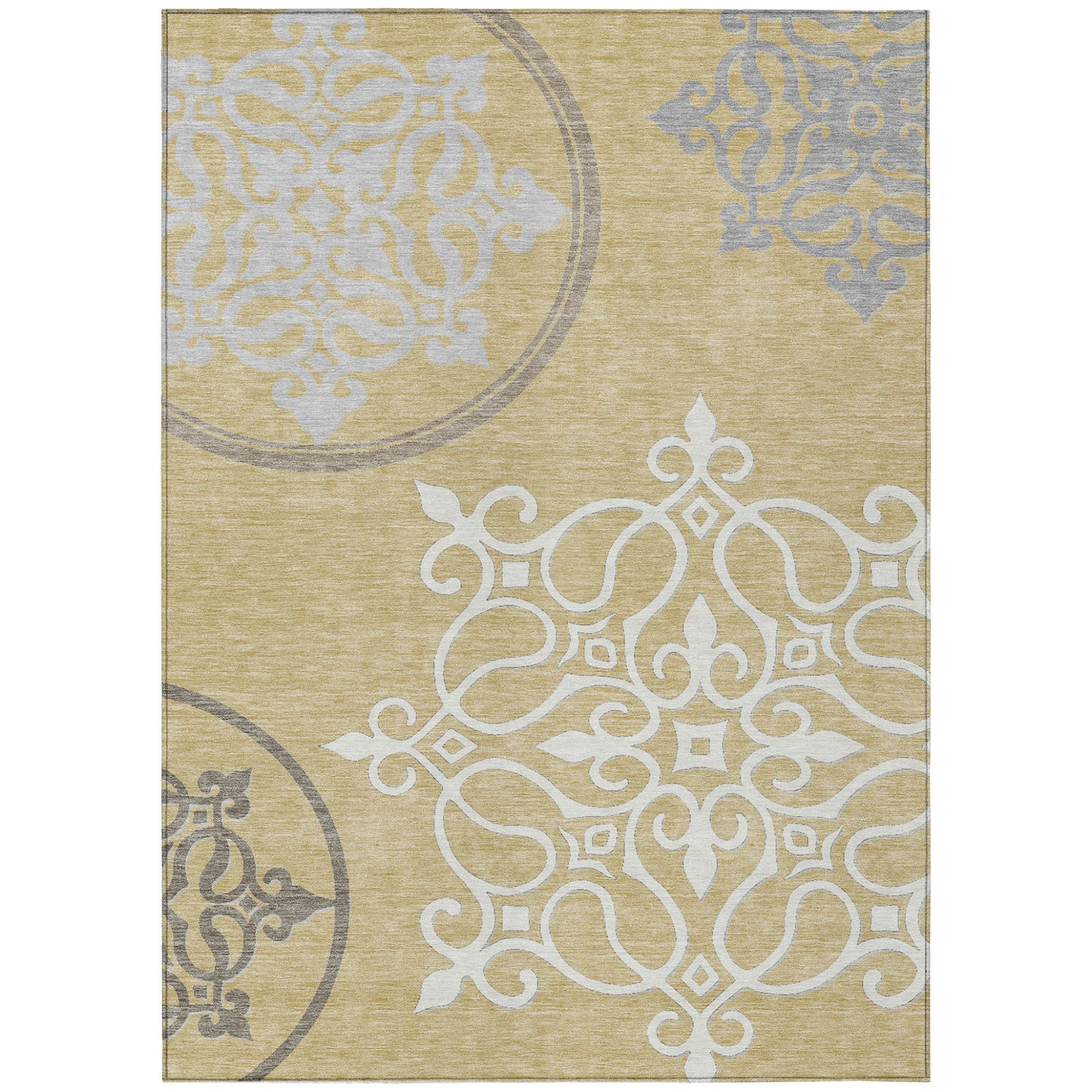 Tabselect Home Line 5' X 8' Gold Ivory And Gray Floral Medallion Washable Indoor Outdoor Area Rug