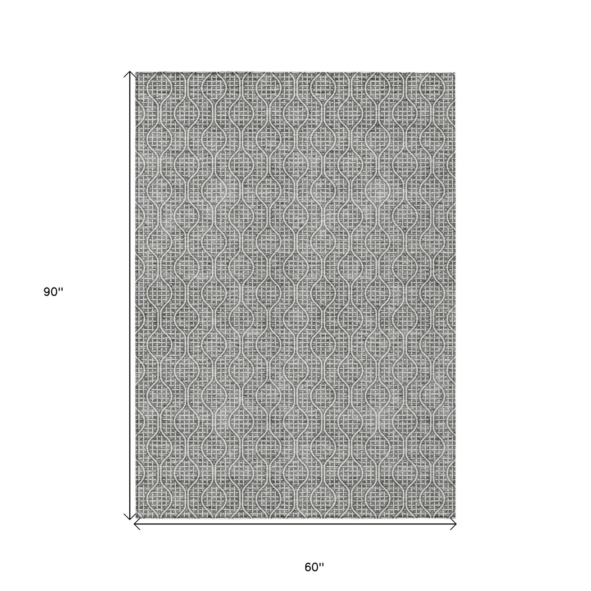 Tabselect Home Line 5' X 8' Gray And Ivory Geometric Washable Indoor Outdoor Area Rug
